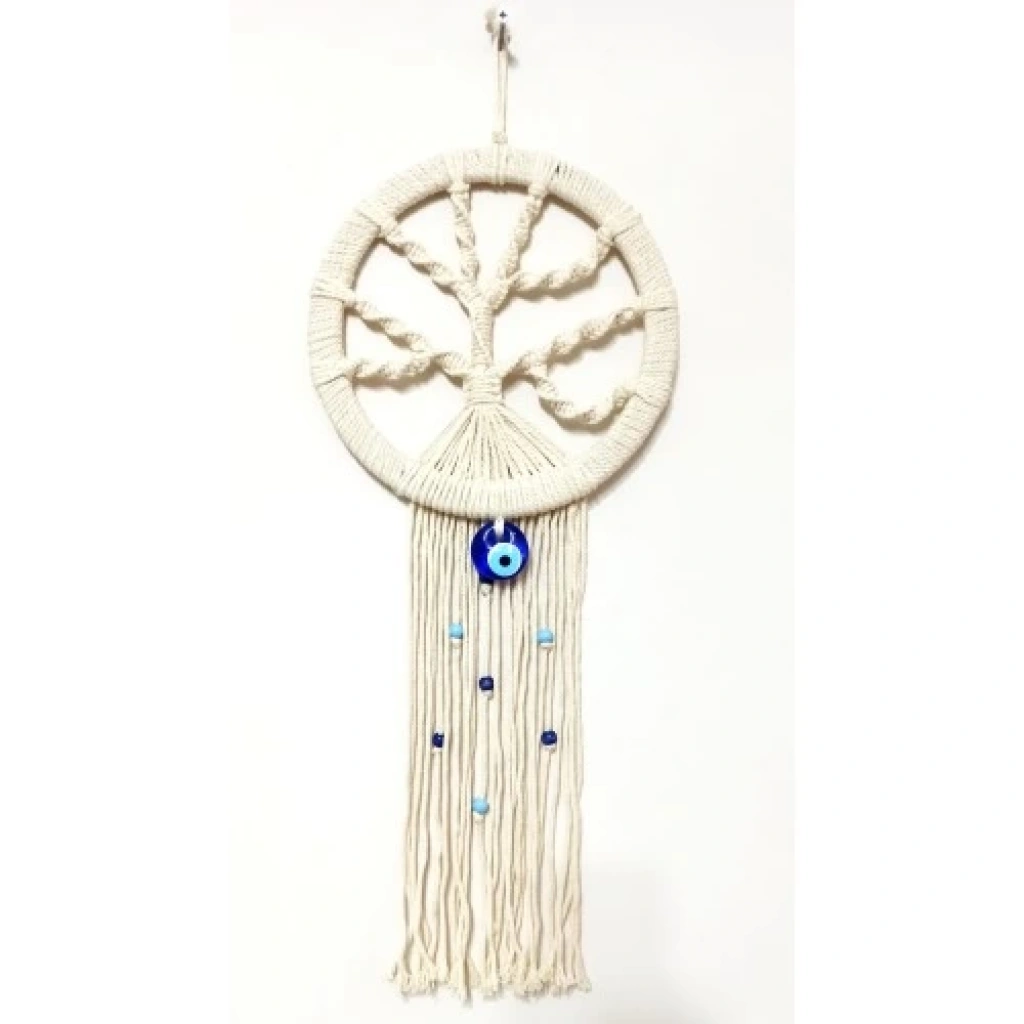 Nazar Boncuklu Ekru Renk Makrome Hayat Ağacı Duvar Süsü