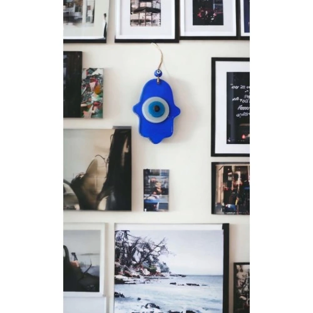 Nazar Boncuklu Şeffaf Mavi Fatma Ana Bereket Eli Cam Duvar Süsü