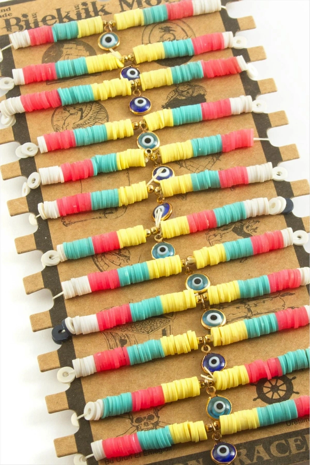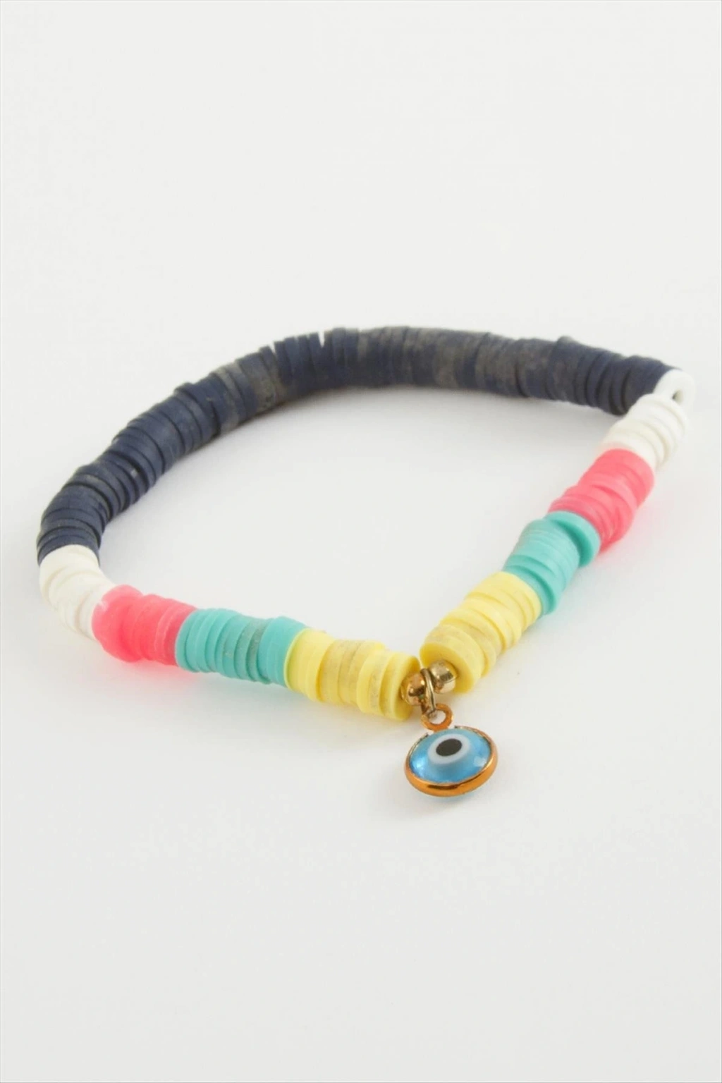 Bileklik; Ürün malzemesi fimo boncuk ve metaldir. Misina üzerine dizilmiştir. üretilmiştir. Renkleri asortilidir. Siparişlerinizde karışık olarak gönderilecektir.