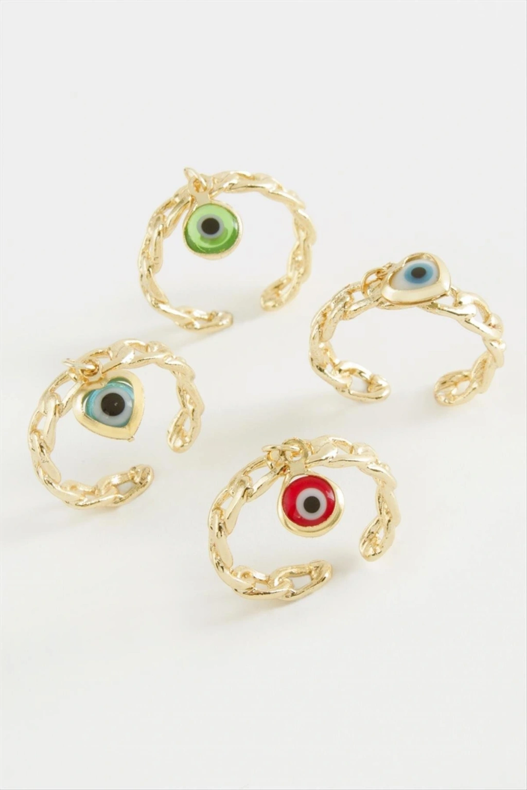 Yüzük; Ürün malzemesi metaldir. 1 sınıf kaliteli malzeme kullanılmıştır. Yüzük parmağa göre ayarlanabilir. Nazar figür renkleri asortilidir. Siparişlerinizde karışık olarak gönderilecektir.