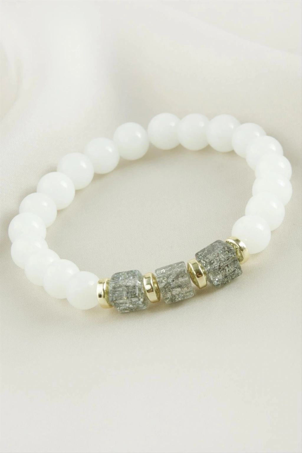 Bileklik: Ürün malzemesi necef ve kuvars doğaltaşından imal edilmiştir. Misina üzerine dizilmiştir. Misina esneme özelliği bulunmaktadır.