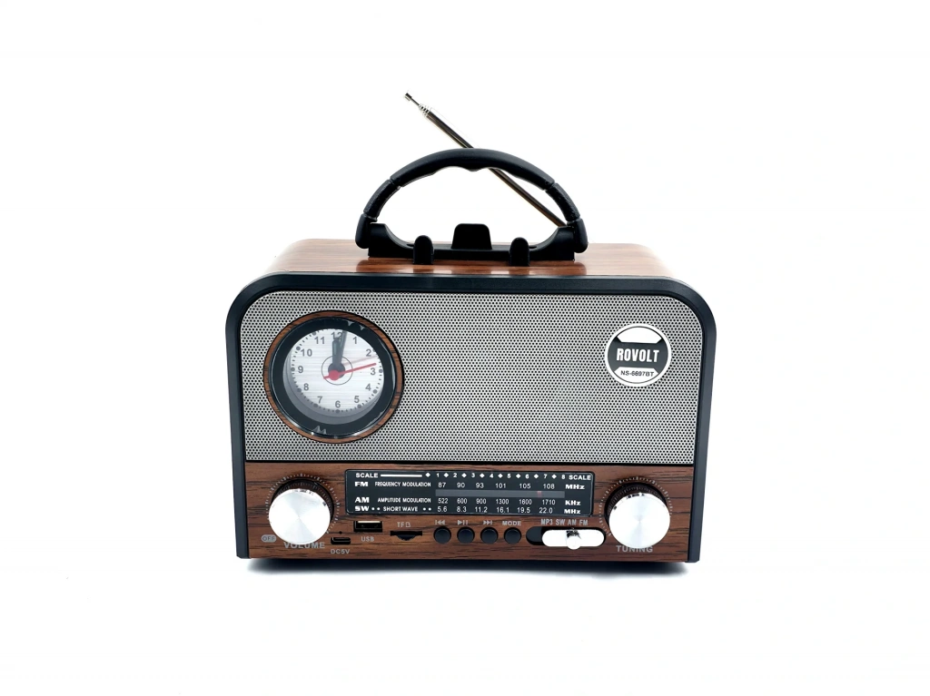 Orta Boy Retro Ahşap Tasarım Bluetooth Hoparlörlü Radyo – FM/AM Destekli, Şarjlı ve Taşınabiliri Radyo NS-6636 (4887)