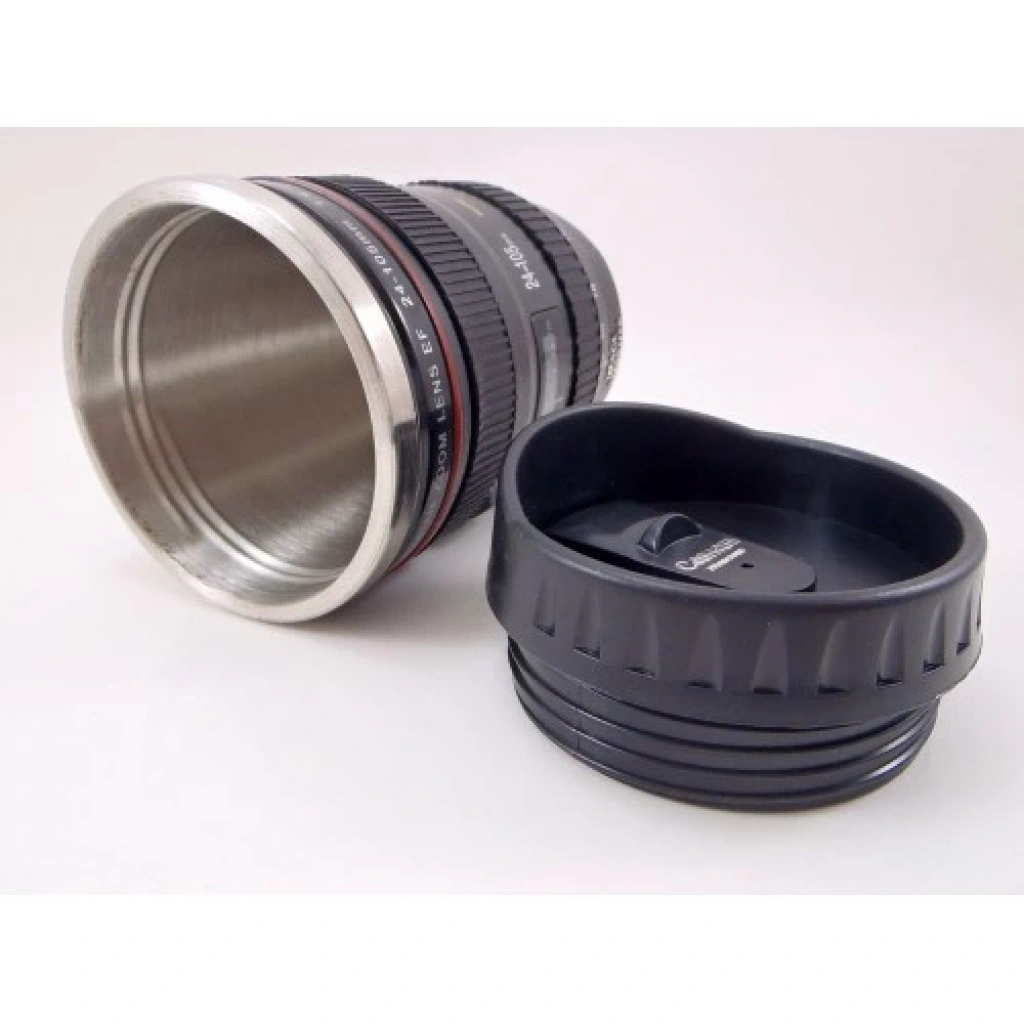 Objektif görünümlü termos bardak.