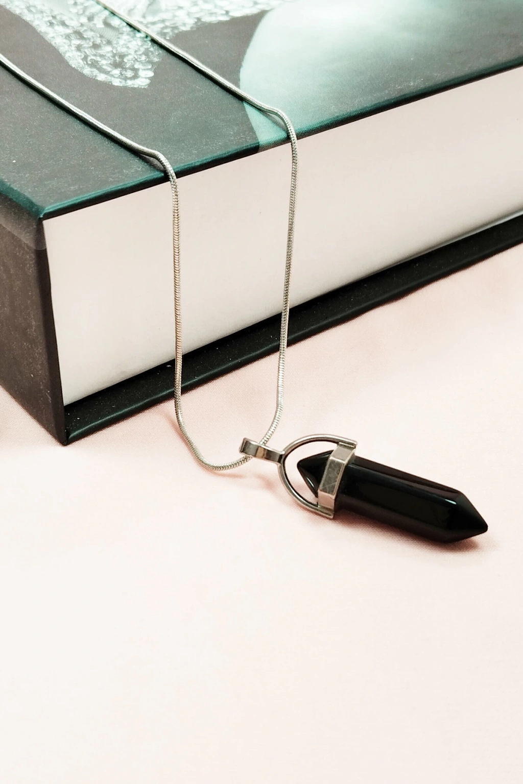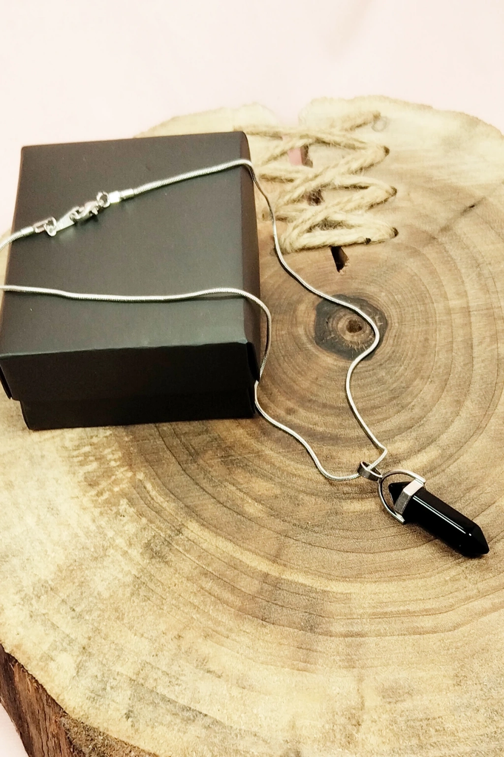 Onix Doğal Taşı Zincirli El Yapımı Tasarımlı Kolye Uç: 3,5 cm Zincir: 20 cm Kutulu