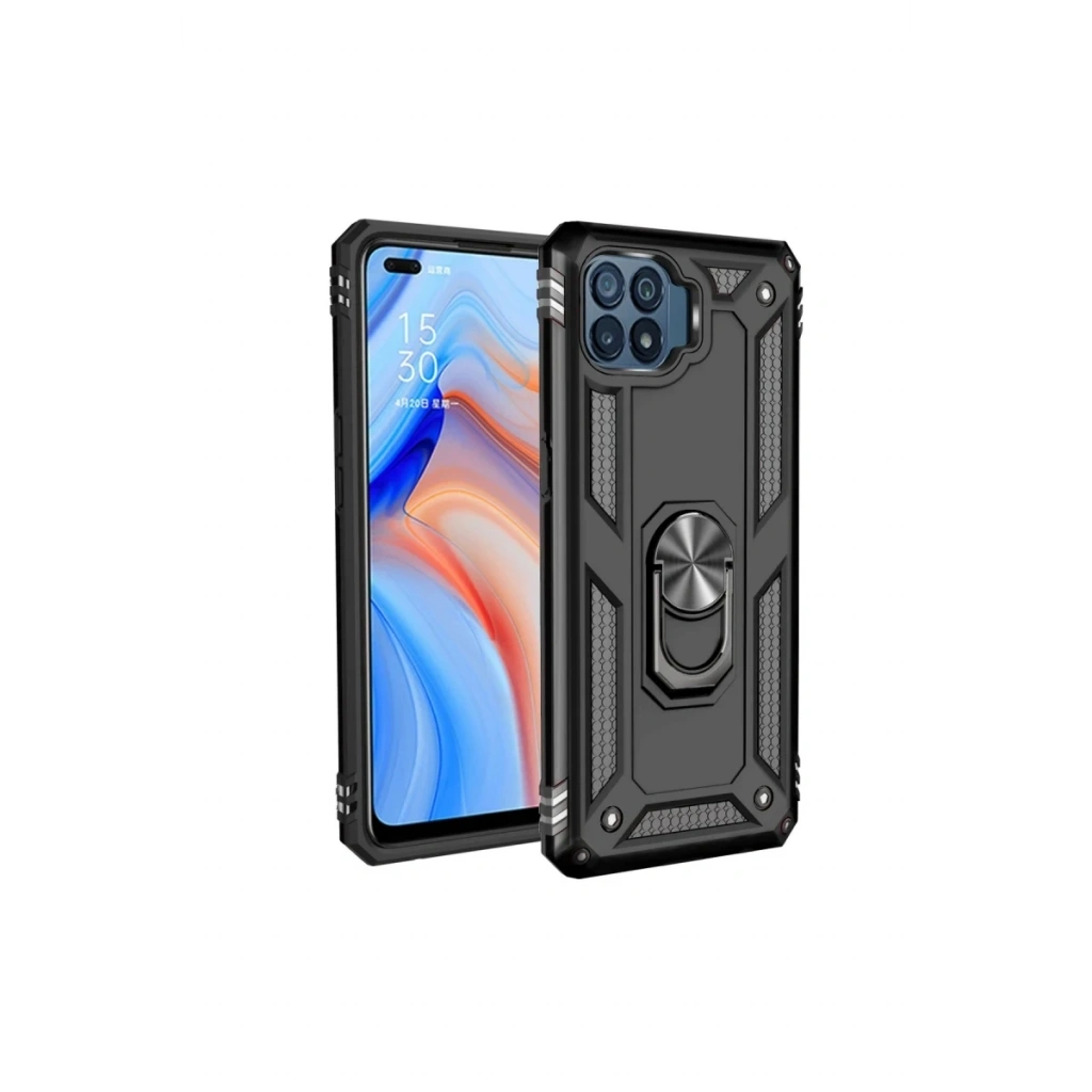 Oppo Reno 4 Lite Kılıf Sofya Yüzüklü Silikon Kapak - Siyah