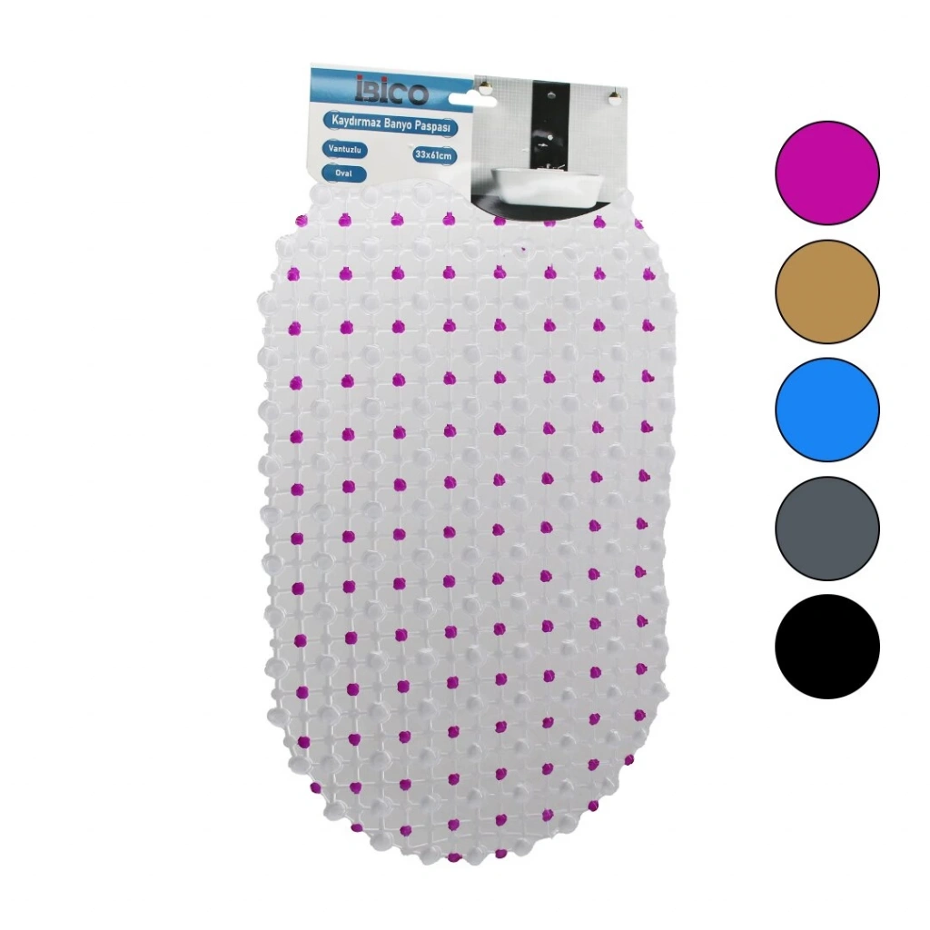 OVAL - EKO PVC +VANTUZ DESEN - ŞEFFAF RENKLİ 122PCS VANTUZ KAYDIRMAZ BANYO - KÜVET PASPAS 33X61CM
