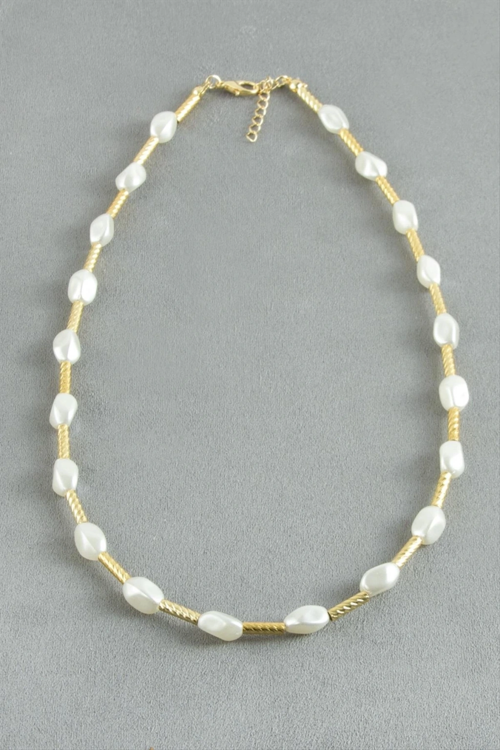 Kolye; Ürün malzemesi metal ve incidir. Kolye uzunluğu 45 cmdir. 1 sınıf kaliteli malzeme kullanılmıştır.
