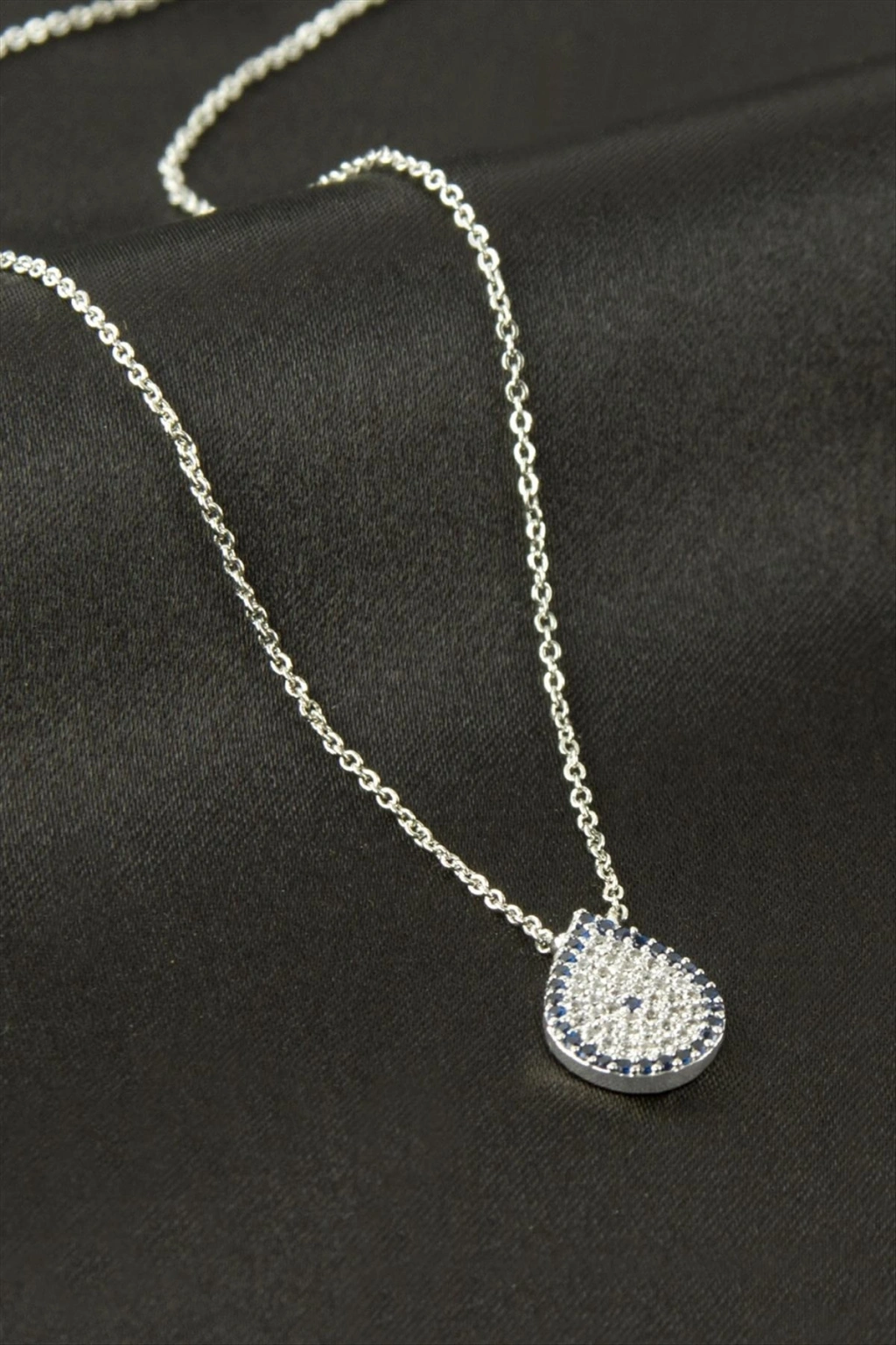 Kolye; Ürün malzemesi metal ve zirkon taşlıdır. Ürün boyu 45 cmdir. Kartlıdır. 1 sınıf kaliteli malzemeden üretilmiştir. Ürün ucundaki aparat boyu 1,5 cmdir.
