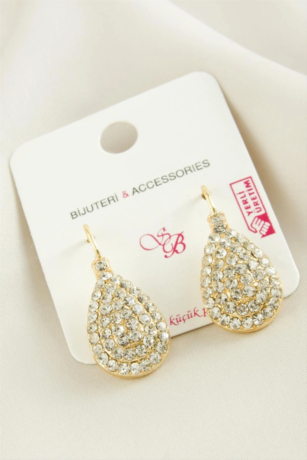 Küpe; Ürün malzemesi taş ve metaldir. Ürün boyu 2 cmdir. Ürün arkası klipsilidir.