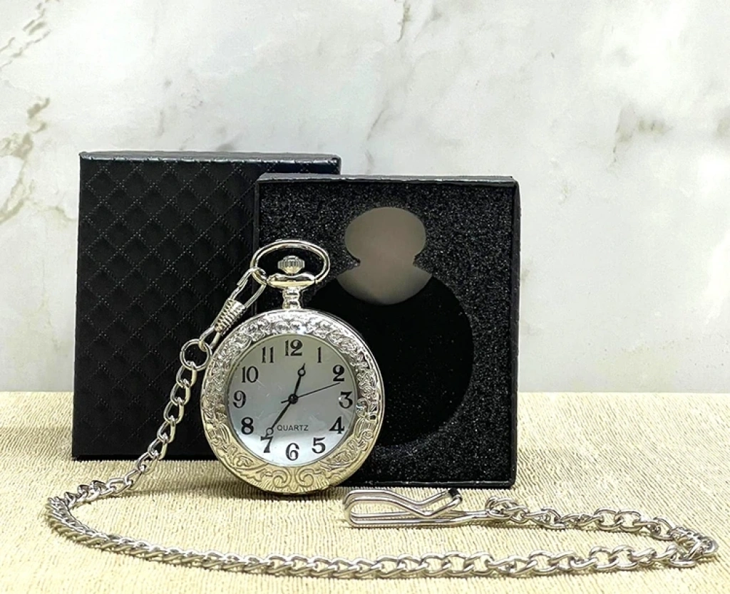 Özel Kutulu Gümüş Köstekli Saat Zamansız bir zarafet sunan Gümüş Köstekli Saat , nostaljiyle şıklığı bir araya getiriyor. Özel kutusu sayesinde hem koleksiyonluk hem de hediye alternatifi olarak öne çıkan bu ürün, cepte taşımaya uygun kompakt yapısıyla dikkat çeker. Gümüş kaplaması ve klasik tasarımıyla vintage sevenler için ideal bir aksesuardır.Köstekli yapısı sayesinde klasik stilin vazgeçilmezlerinden biri olan bu saat, özel günlerde anlamlı bir armağan ya da masa üstünde nostaljik bir dekorasyon ögesi olarak da tercih edilebilir.Ürün Özellikleri:Boyut: 4 × 5 cmTasarım: Klasik köstekli cep saatiMalzeme: Gümüş renk kaplamaKutu: Özel hediye kutusundaKullanım: Kişisel aksesuar, koleksiyon, hediyePaket İçeriği:1 adet Özel Kutulu Gümüş Köstekli Saat