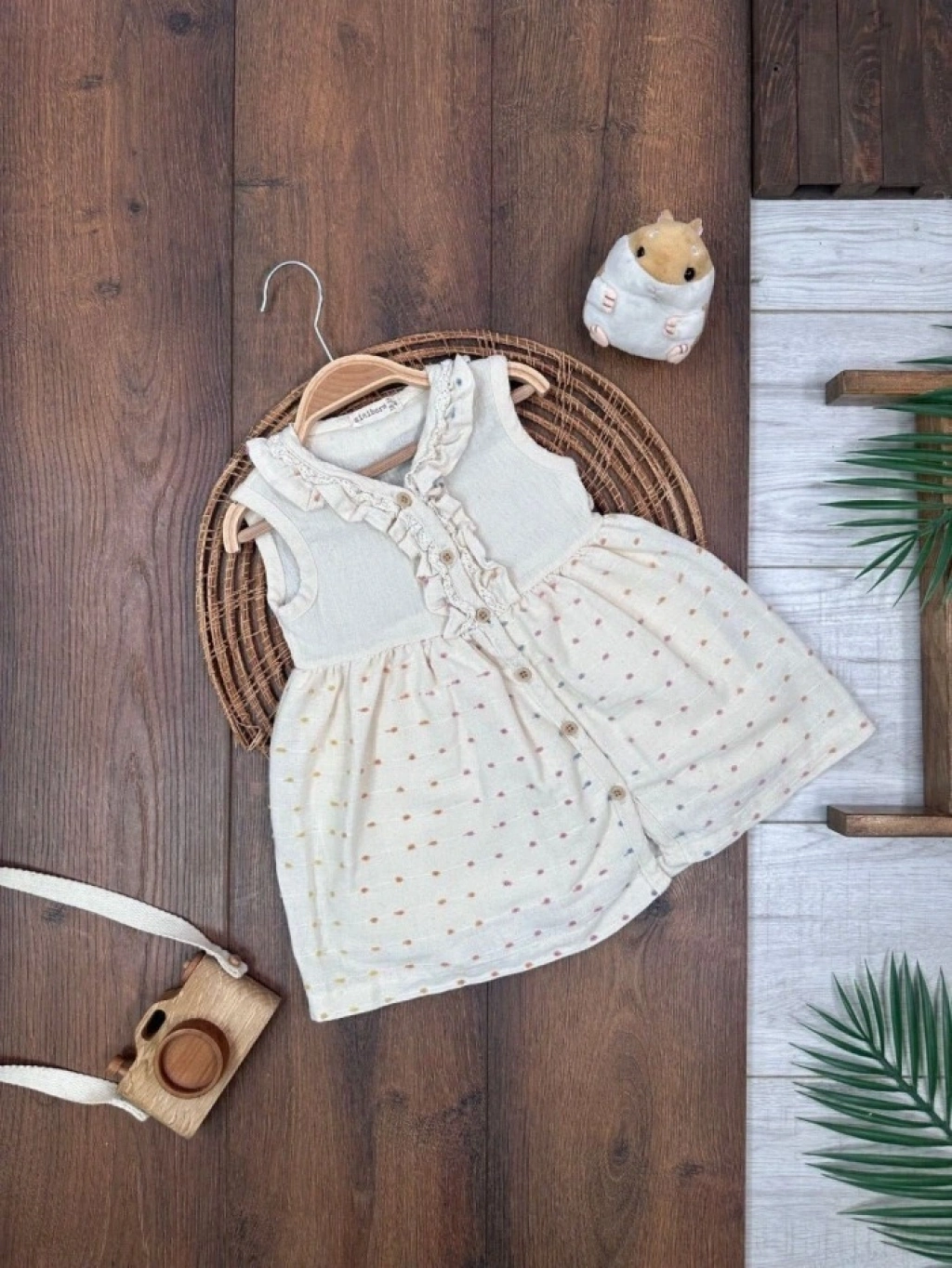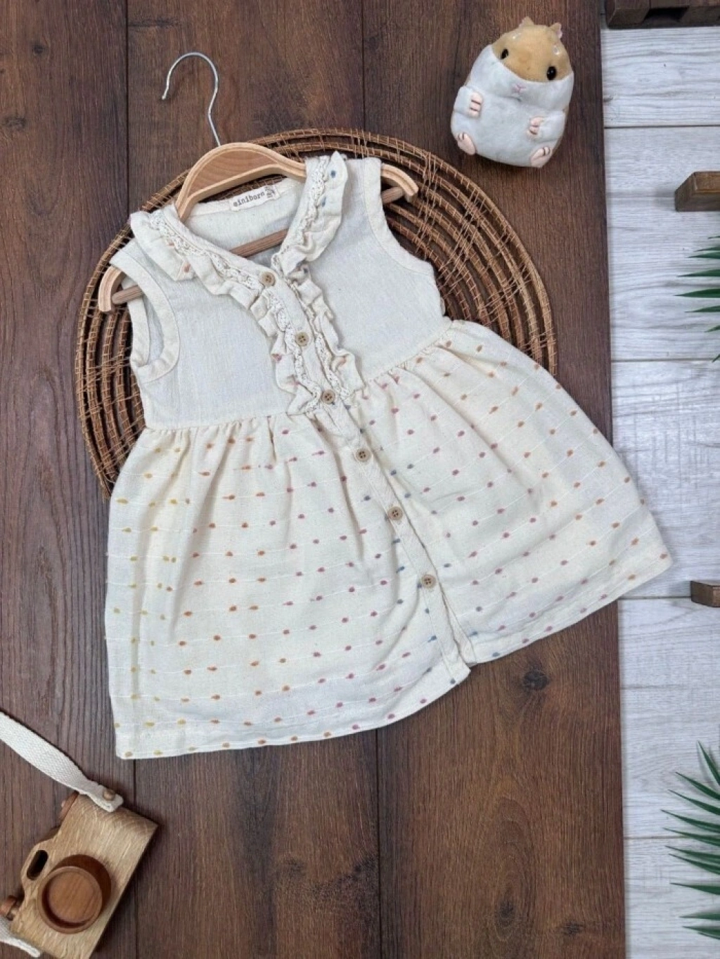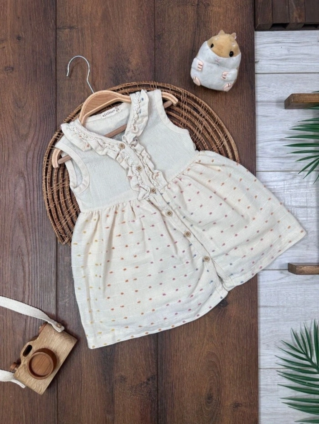 Pamuk Keten Diz Altı Kız Bebek Elbise