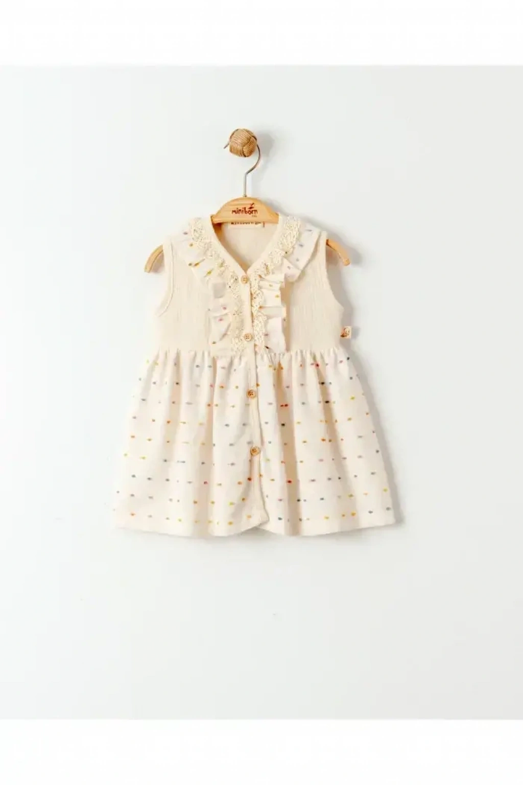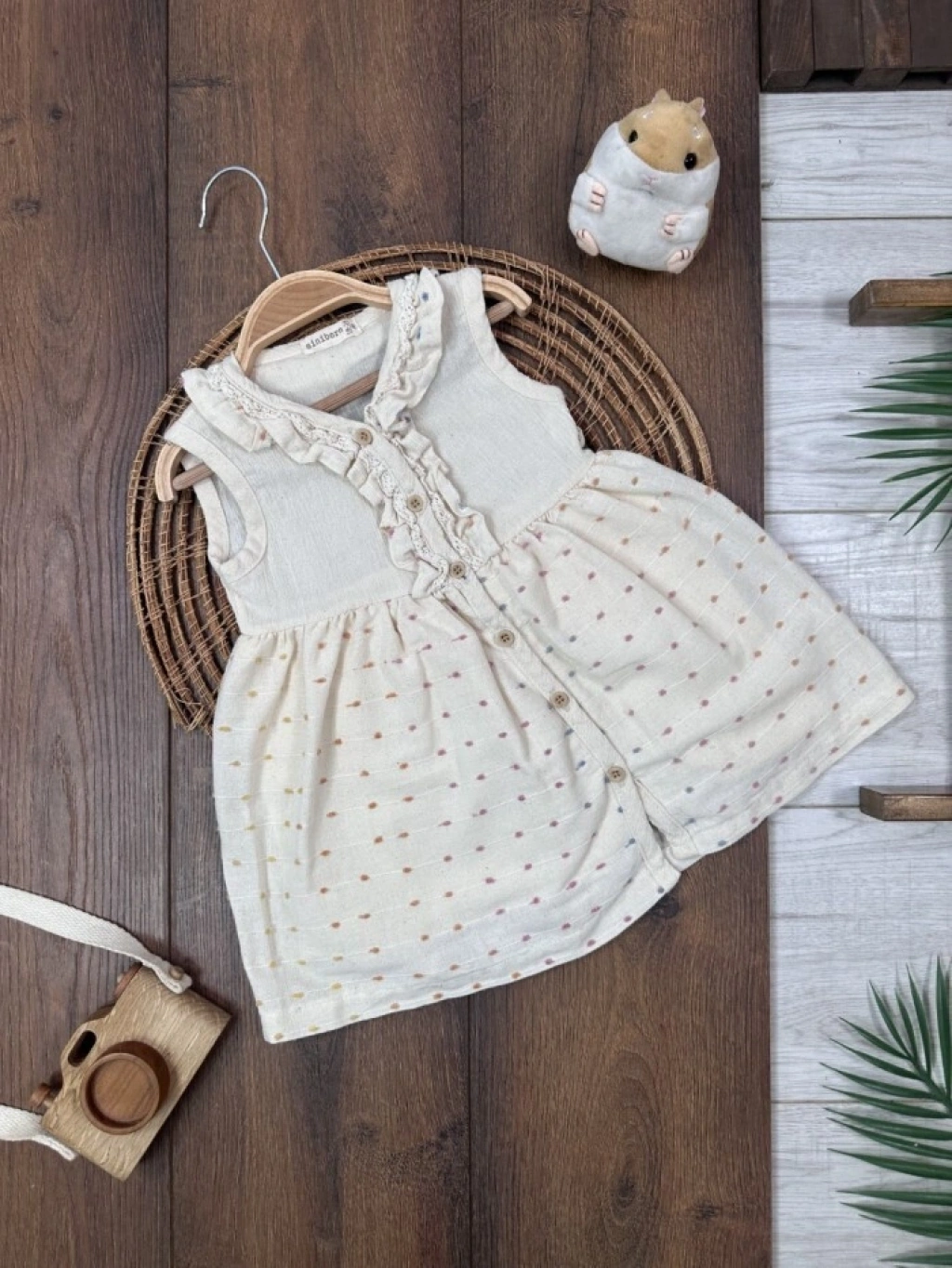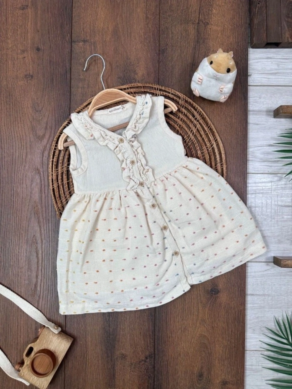 Pamuk Keten Diz Altı Kız Bebek Elbise