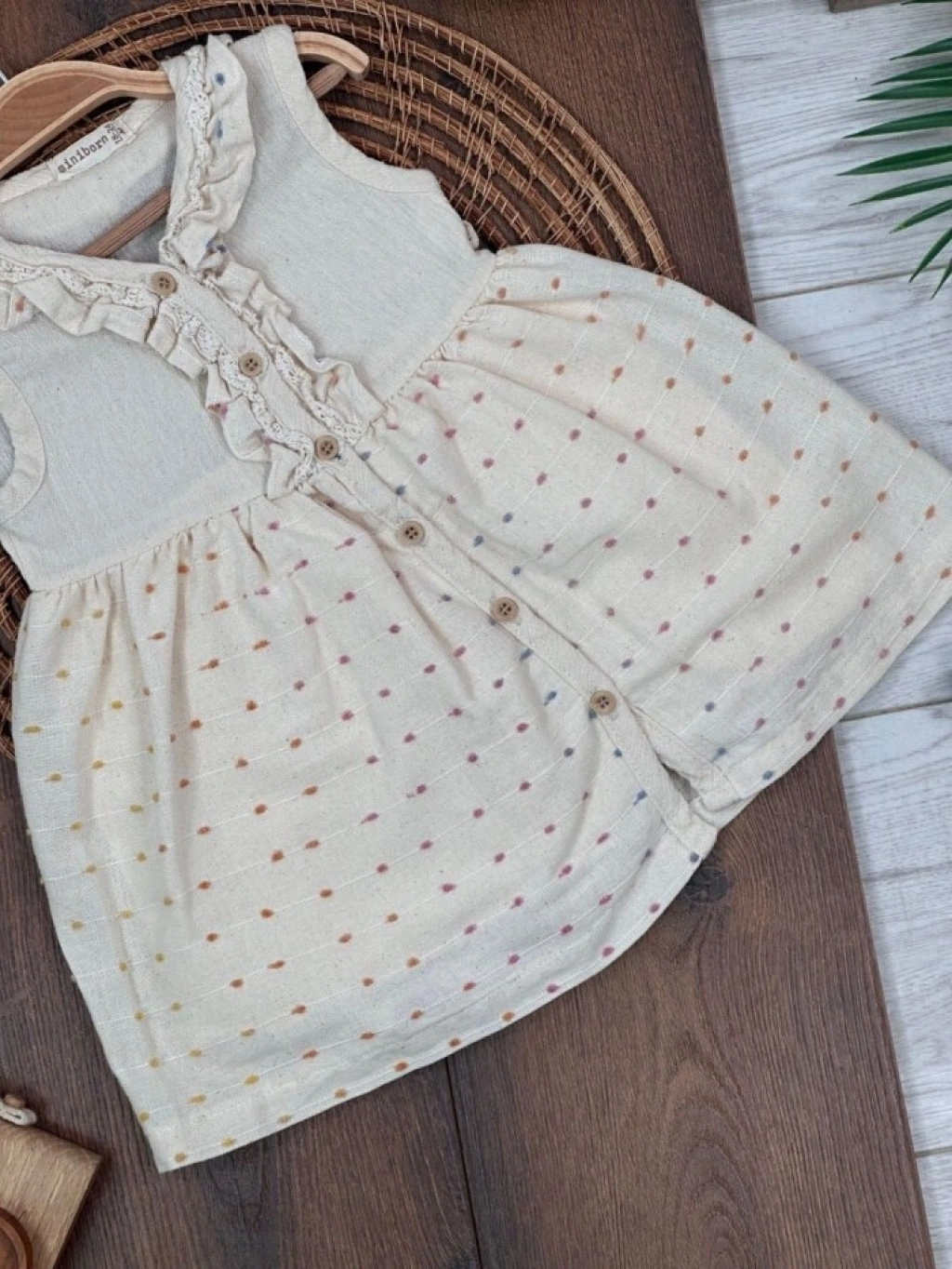 TRUNCU RENK YARIM KOLLU KIZ ÇOCUK EKOSELİ BEBE YAKA BEBEK ETEK BLUZ ELBİSE