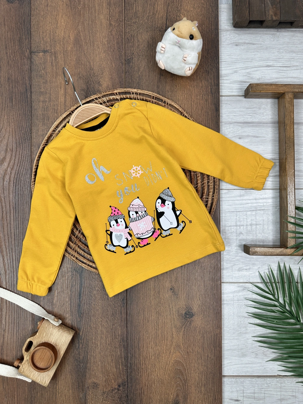 Pamuklu Bisiklet Yaka Kız Bebek Tek Üst