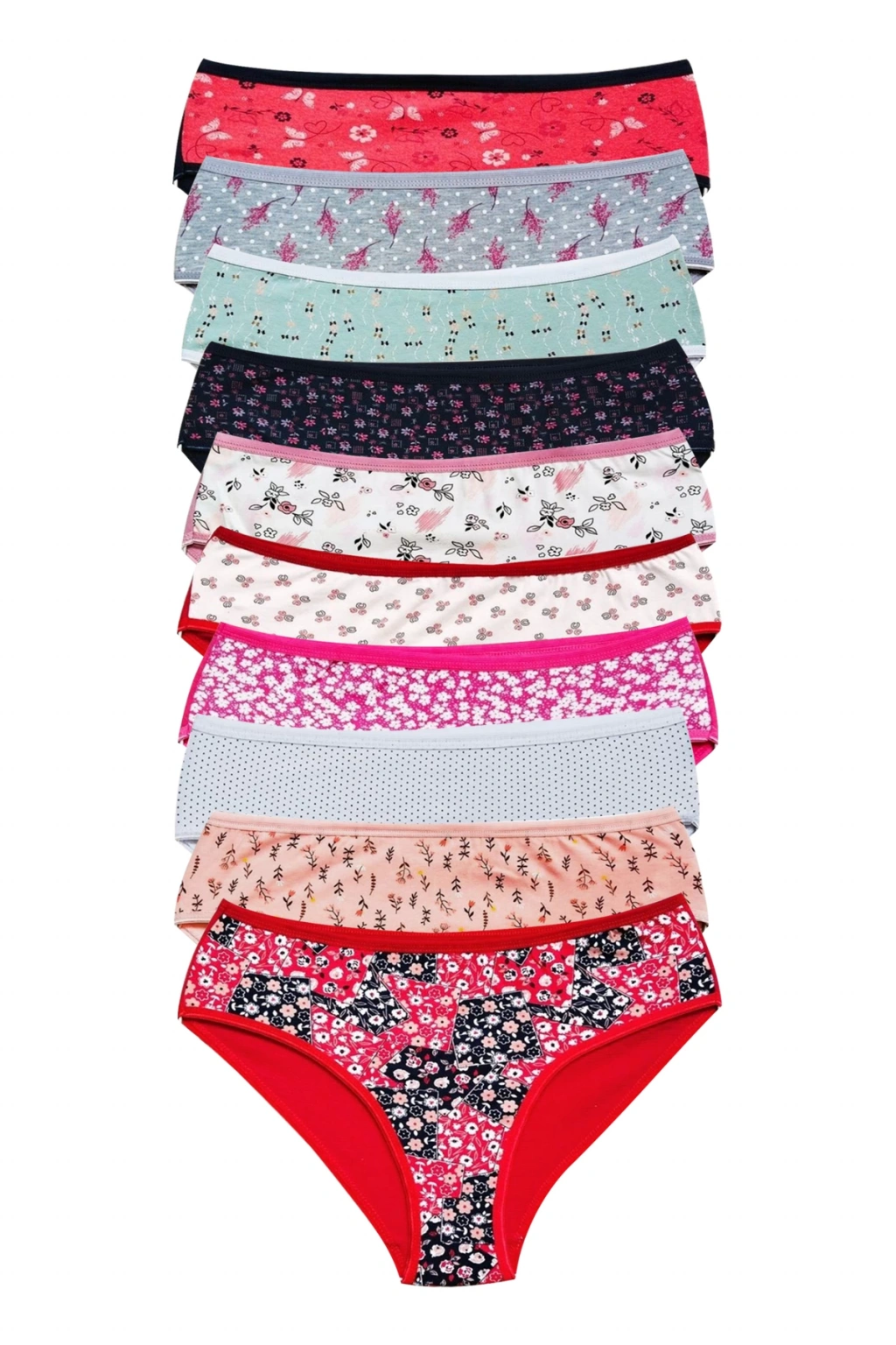 Pamuklu Geniş Kenarlı Likralı Desenli Bato Kadın Külot 10'lu paket