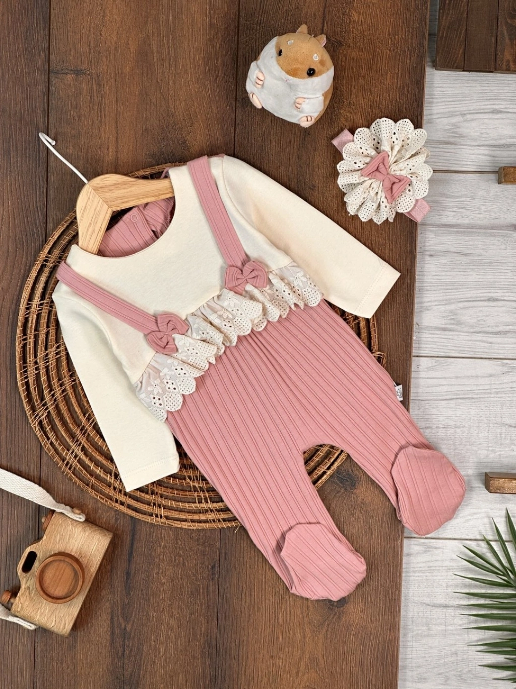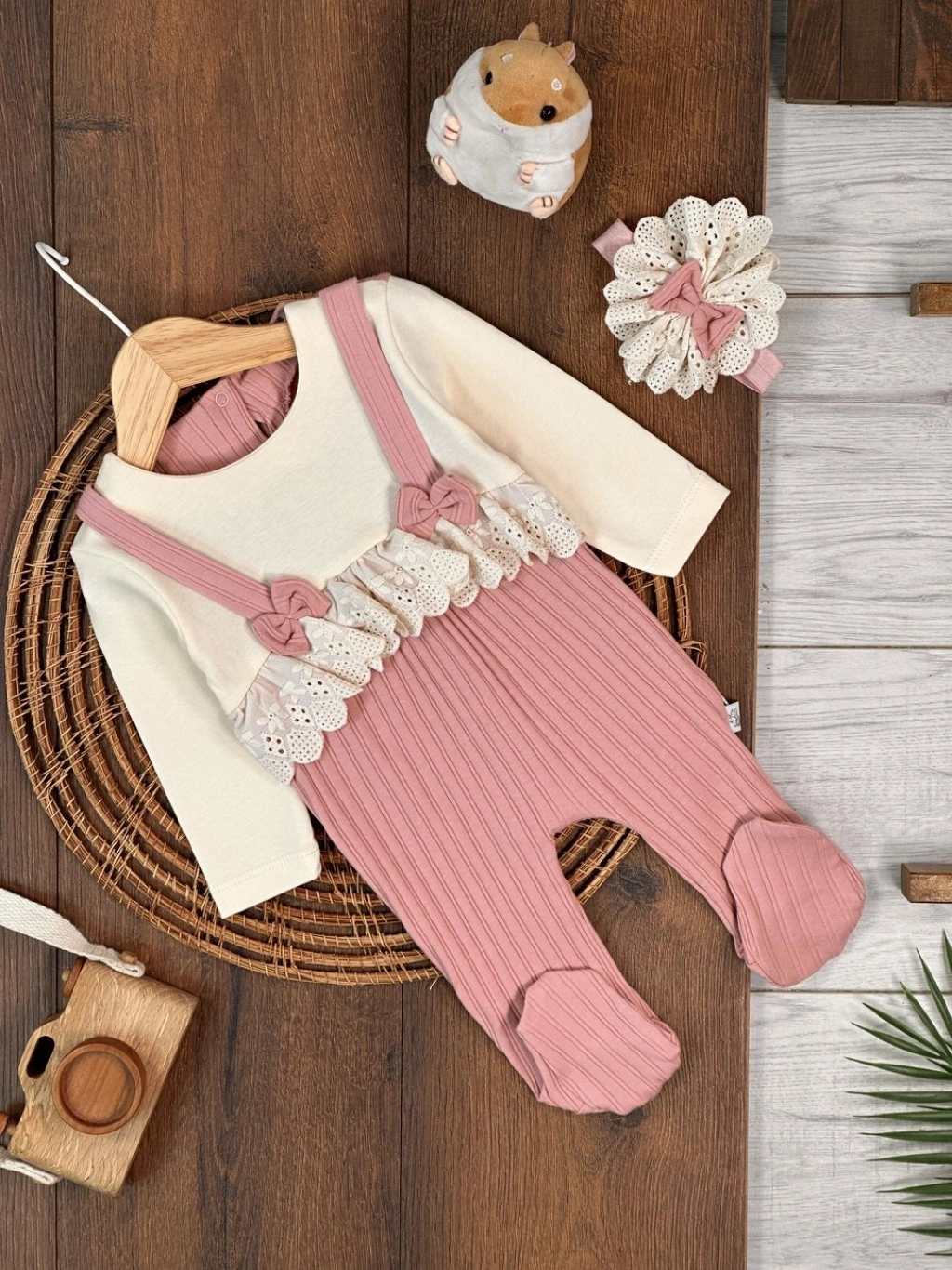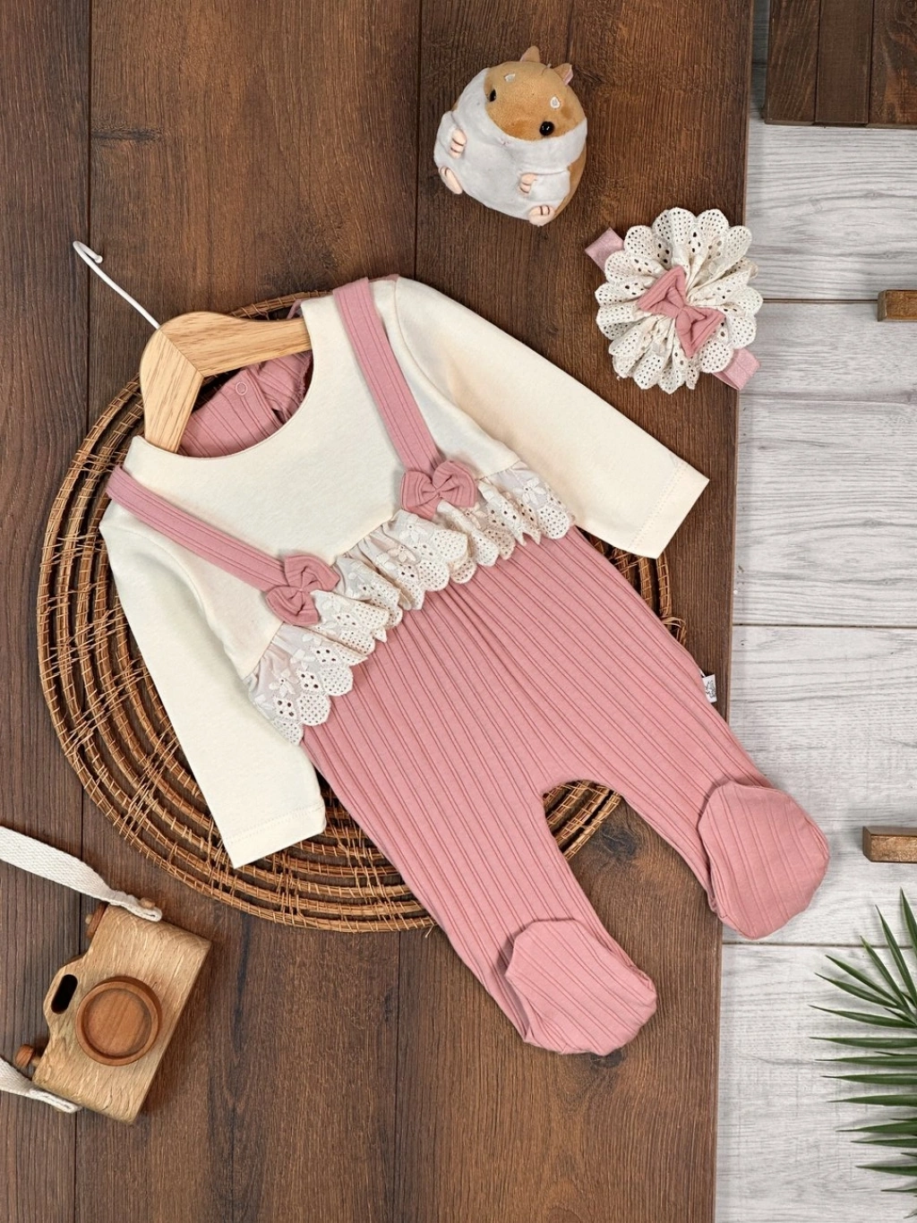Pamuklu Uzun Kollu Kız Bebek Tulum