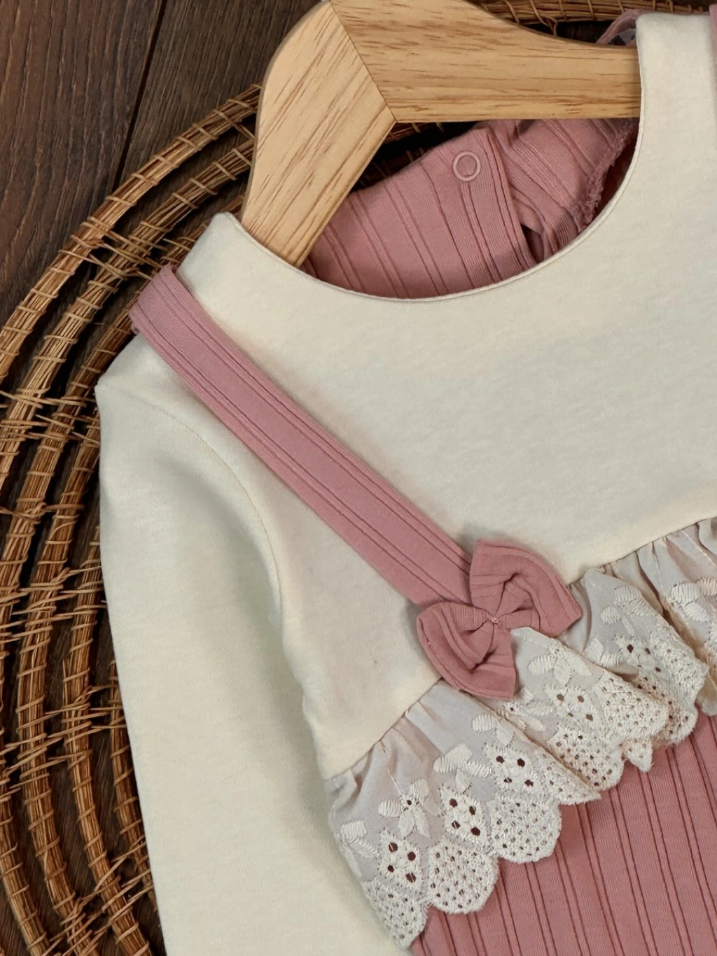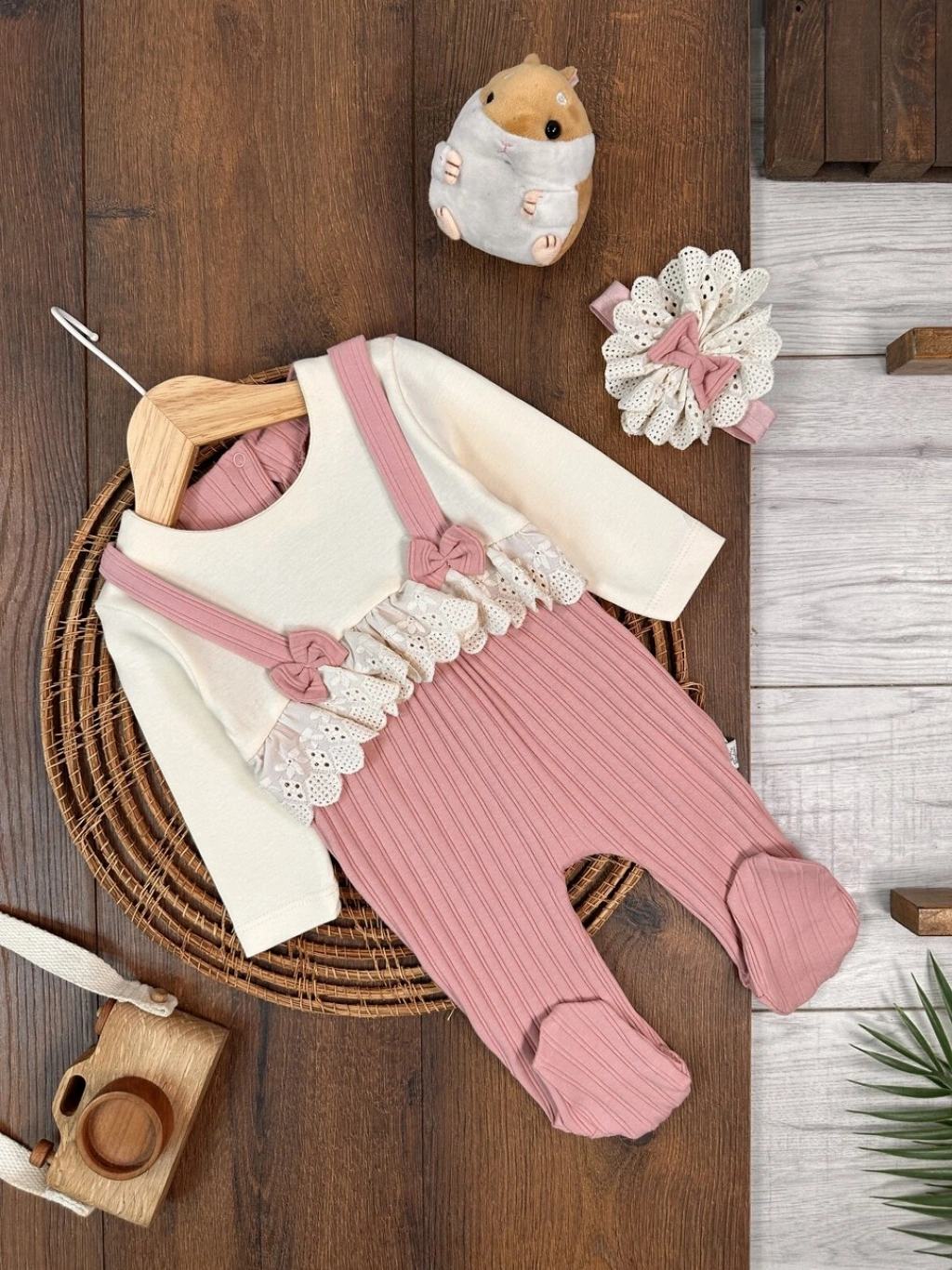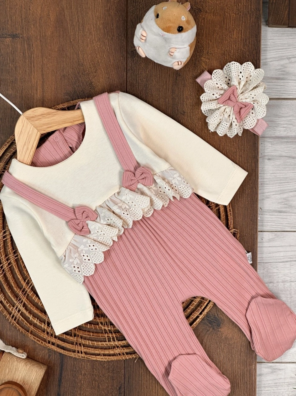 Pamuklu Uzun Kollu Kız Bebek Tulum