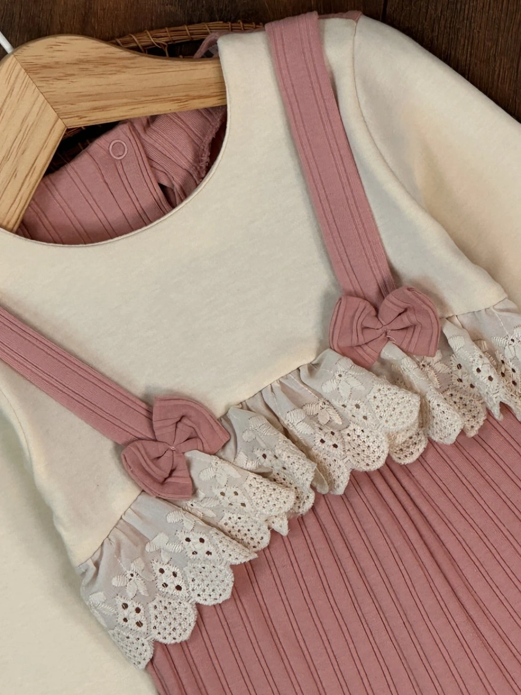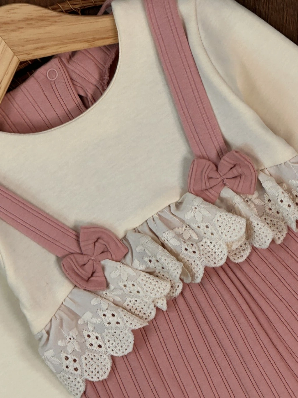 BEYAZ PEMBE YENI SEZON KIZ ÇOCUK & ASKILI KOL BEBEK ELBİSE BİSİKLET YAKA ZIBIN