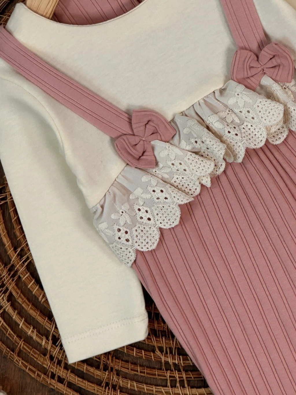 Çiçek Askılı Külotlu 2li Kız Bebek Elbise