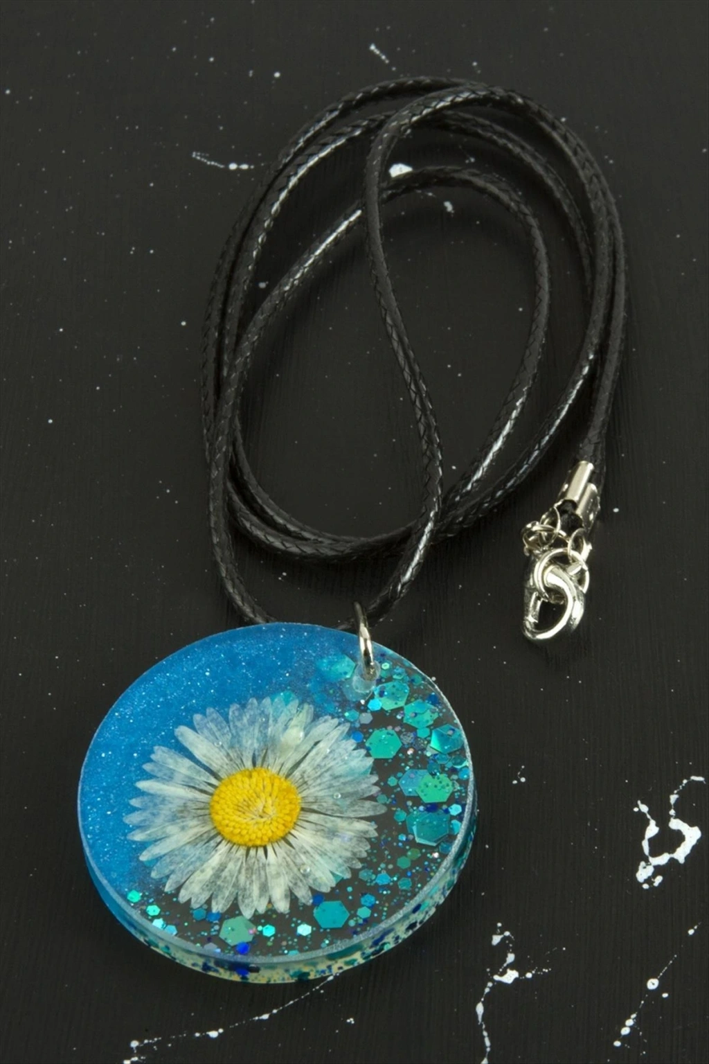 Epoksi Kolye ; Epoksi ürünler el işçiliği ile gerçek kurutulmuş bitkiler, çiçekler, organik doğaltaşlar üretilmiştir. Ürünler de 1. sınıf kaliteli kristal epoksi kullanılmıştır. Grilter ürünlerde epoksiye renk verilmeden üretilir. Her bir ürün diğerinden bağımsız olarak tek tek üretilmektedir. Bundan dolayı ürünler arasında küçük farklılıklar oluşabilir. Ürünler başlıca 4 ürün grubunda çalışılmıştır. Ürün epoksi boyu 3 cmdir. Vinlex deri kordon uzunluğu 45 cmdir. Siparişleriniz de fotograftaki ürün gönderilecektir.
