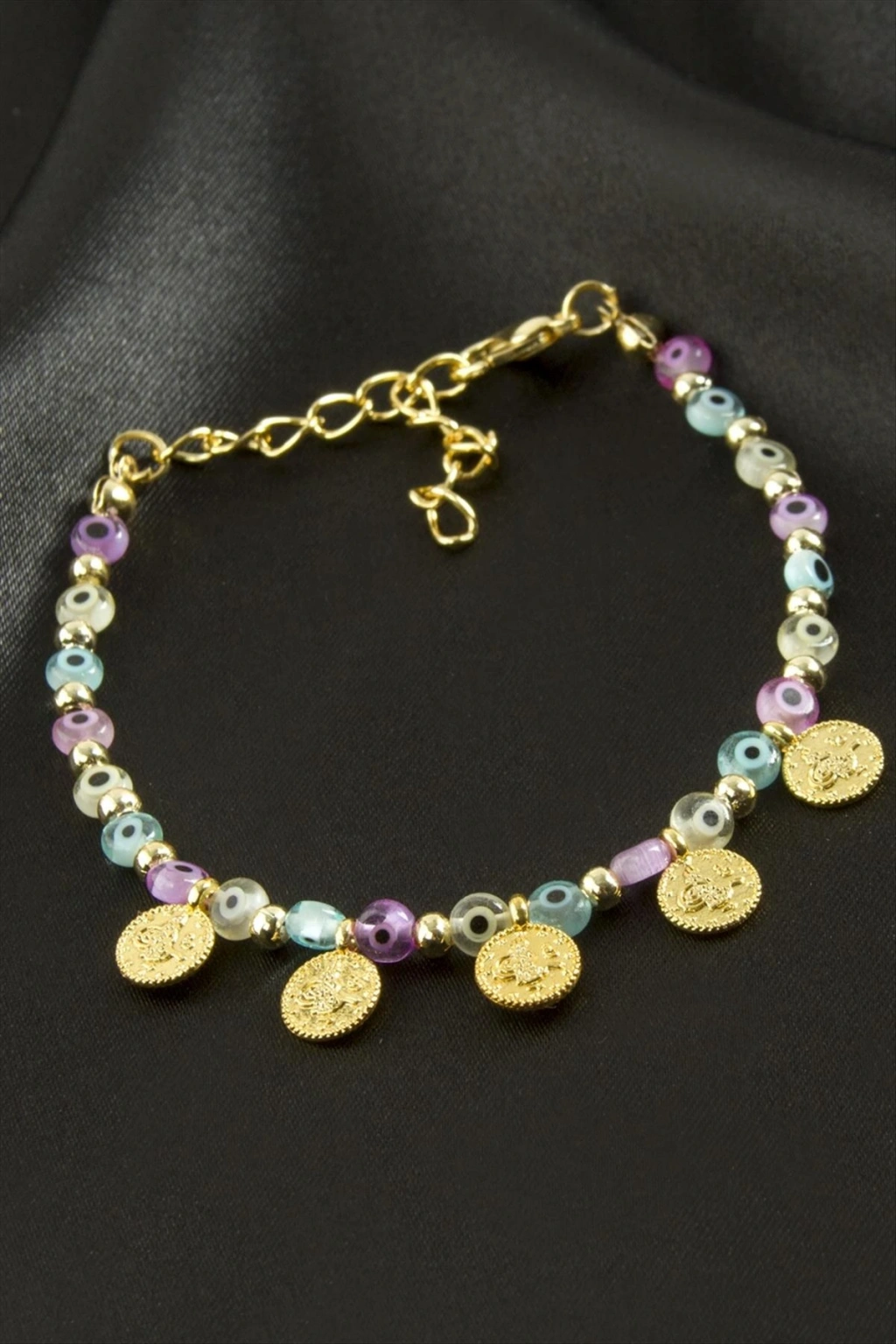 Bileklik; Ürün malzemesi metal ve boncuktur. Ürün boyu 19 cmdir.