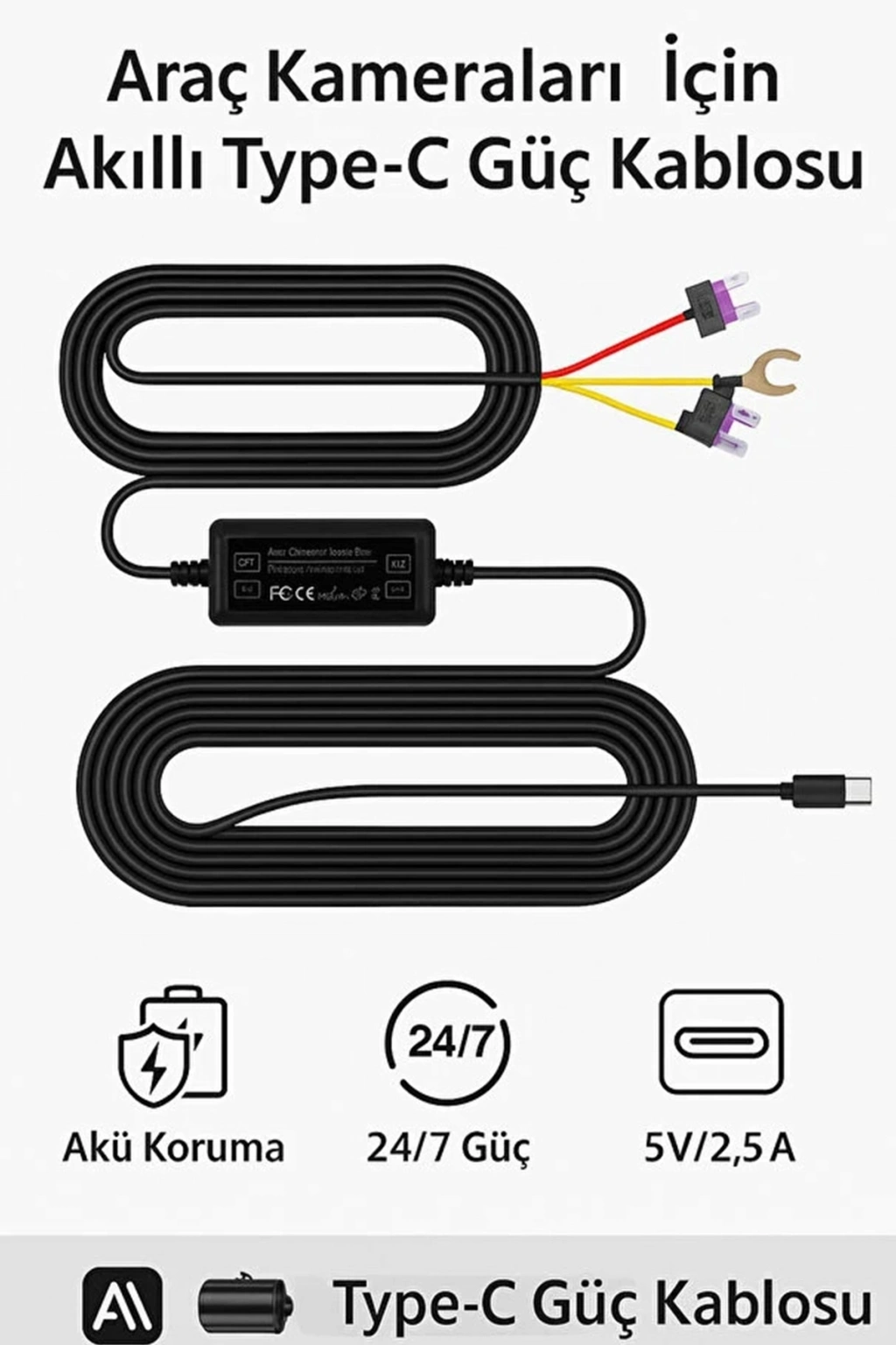 Aracınızı park edip ayrıldığınızda aklınızın onda kalmasına son verin! Type-C Hardwire Kit, araç içi kameranızı sadece sürüş sırasında değil, park halindeyken de tam kapasiteyle çalıştıran profesyonel bir güç çözümüdür. Yeni nesil Type-C girişli tüm kameralarla tam uyumlu olan bu kit, aracınızın sigorta kutusundan aldığı enerjiyi güvenli bir şekilde kameranıza iletir.