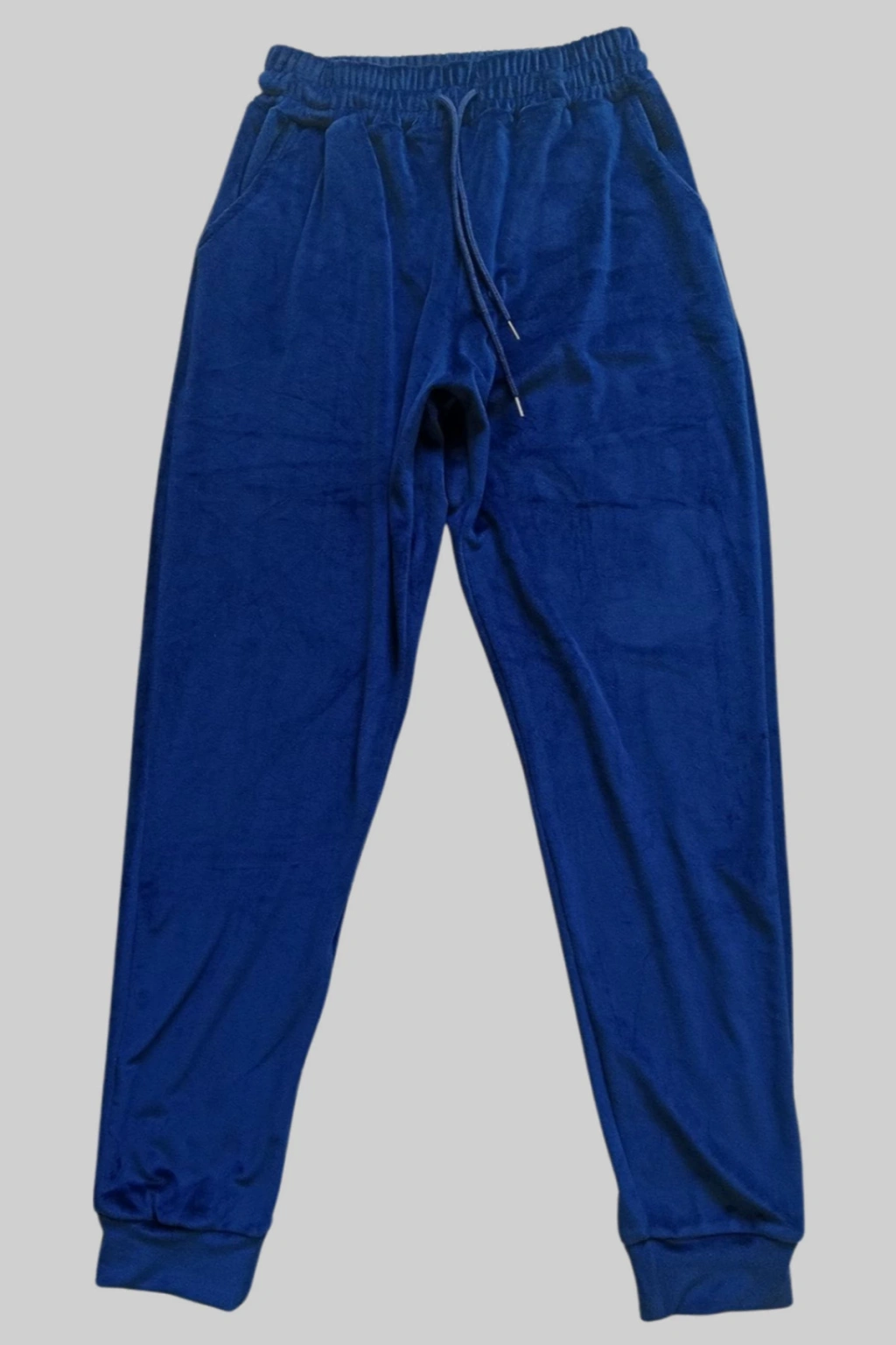 Parlak Kadife Cepli Pantolon Eşofman Pijama Altı Unisex Lastikli Paça Mavi
