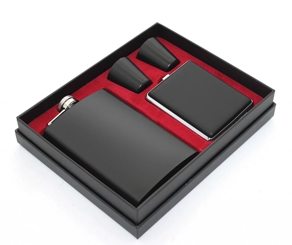 Paslanmaz Çelik 2 Shot Bardak Ve Tabakalı Matara Seti Alk2670