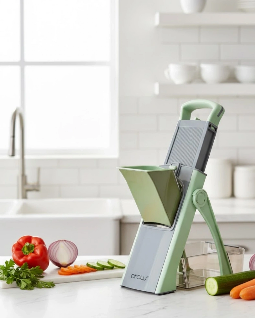 Dayanıklı çelik malzeme kullanımı sayesinde uzun ömürlü ve sağlam bir yapı sunan el rendesi, mutfakta güvenli ve pratik kullanım arayanlar için ideal bir çözümdür. Yüksek kaliteli paslanmaz çelikten üretilmiş olan doğrama bıçakları, sebze ve meyveleri rahatlıkla dilimlemenize ve doğramanıza olanak tanır. Keskin bıçak yapısı sayesinde minimum eforla maksimum verim elde edilir.Üst kısmında yer alan özel at, sadece birkaç hamleyle malzemelerinizi istediğiniz kalınlıkta doğramanızı sağlar. Bu sistem, hem hız kazandırır hem de mutfakta geçirilen zamanı önemli ölçüde azaltır. Eşsiz tasarımı sayesinde elleriniz bıçaklara yaklaşmaz ve bu da ürünü günlük kullanım için son derece güvenli hale getirir.Kompakt ve katlanabilir yapısı, kullanım sonrası kolay saklama imkânı sunar. Dolap içinde veya çekmecede minimum yer kaplar. Ürünle birlikte gelen temizlik fırçası, bıçaklar arasında biriken gıda artıklarının kolayca temizlenmesini sağlar. Ayrıca entegre yiyecek toplama haznesi, doğrama sırasında tezgâhın temiz kalmasına yardımcı olur.Kolay temizlenebilir yüzeyi ve şık, modern tasarımı ile mutfak dekorasyonuna es bir dokunuş katar. Hem fonksiyonel hem de görsel olarak beklentileri karşılayan bu el rendesi, mutfağın vazgeçilmez yardımcılarından biri olmaya adaydır.