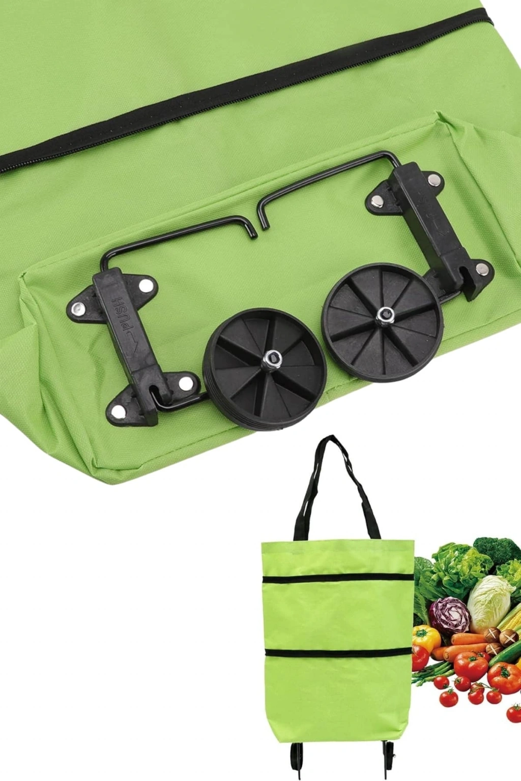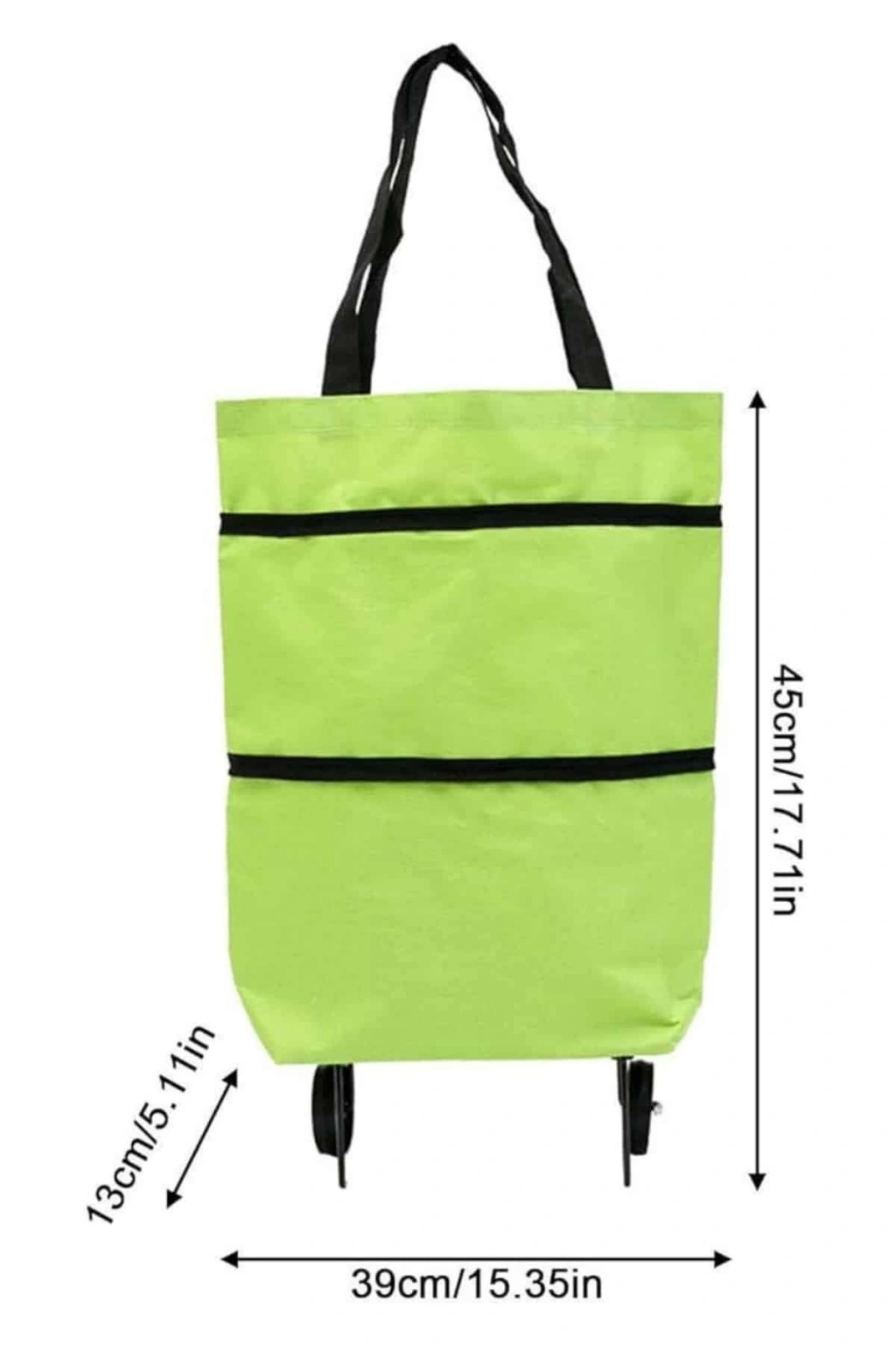 Pazar çantasının alt kısmında yer alan katlanıp açılabilen 2 adet tekerlek ve destek çubukları, düz zeminlerde sabit durmasını sağlar ve hareket ettirirken büyük konfor sunar. Ürün, şık ve modern tasarımıyla dikkat çekerken, ergonomik tutma sapı sayesinde taşıma işlemini daha da kolaylaştırır. Kullanışlı ve fonksiyonel tasarımı ile her evde bulunması gereken bir yardımcı olan Pratik Katlanabilir Tekerlekli Pazar Arabası, alışverişlerinizde yükünüzü hafifletecek ve günlük yaşamınızı kolaylaştıracaktır. Paket içeriğinde 1 adet pazar arabası bulunmaktadır.