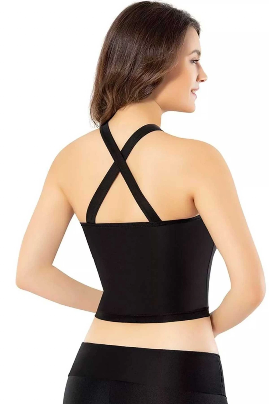 Pedli Dalgıç Modelli Krop Kadın Büstiyer Siyah