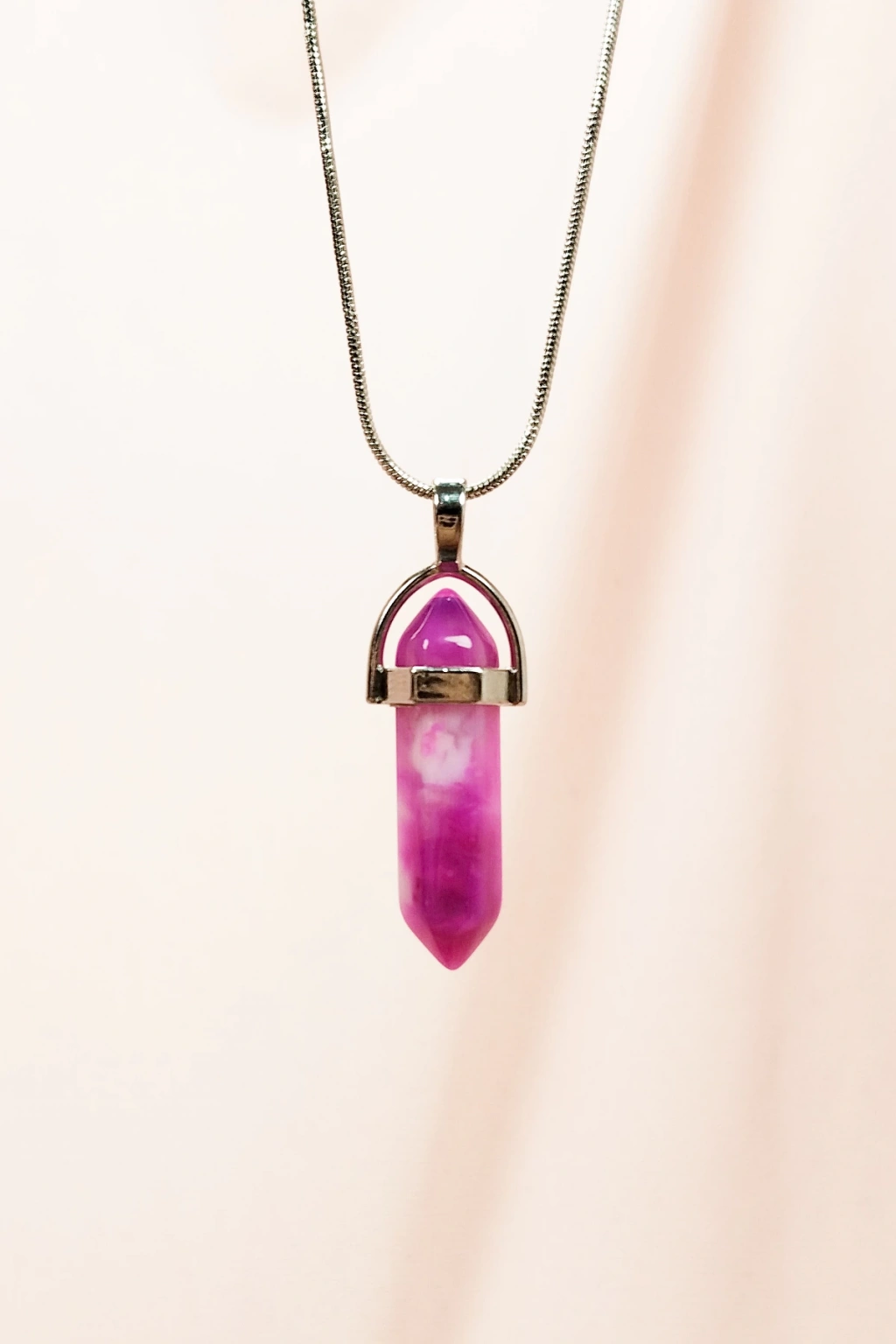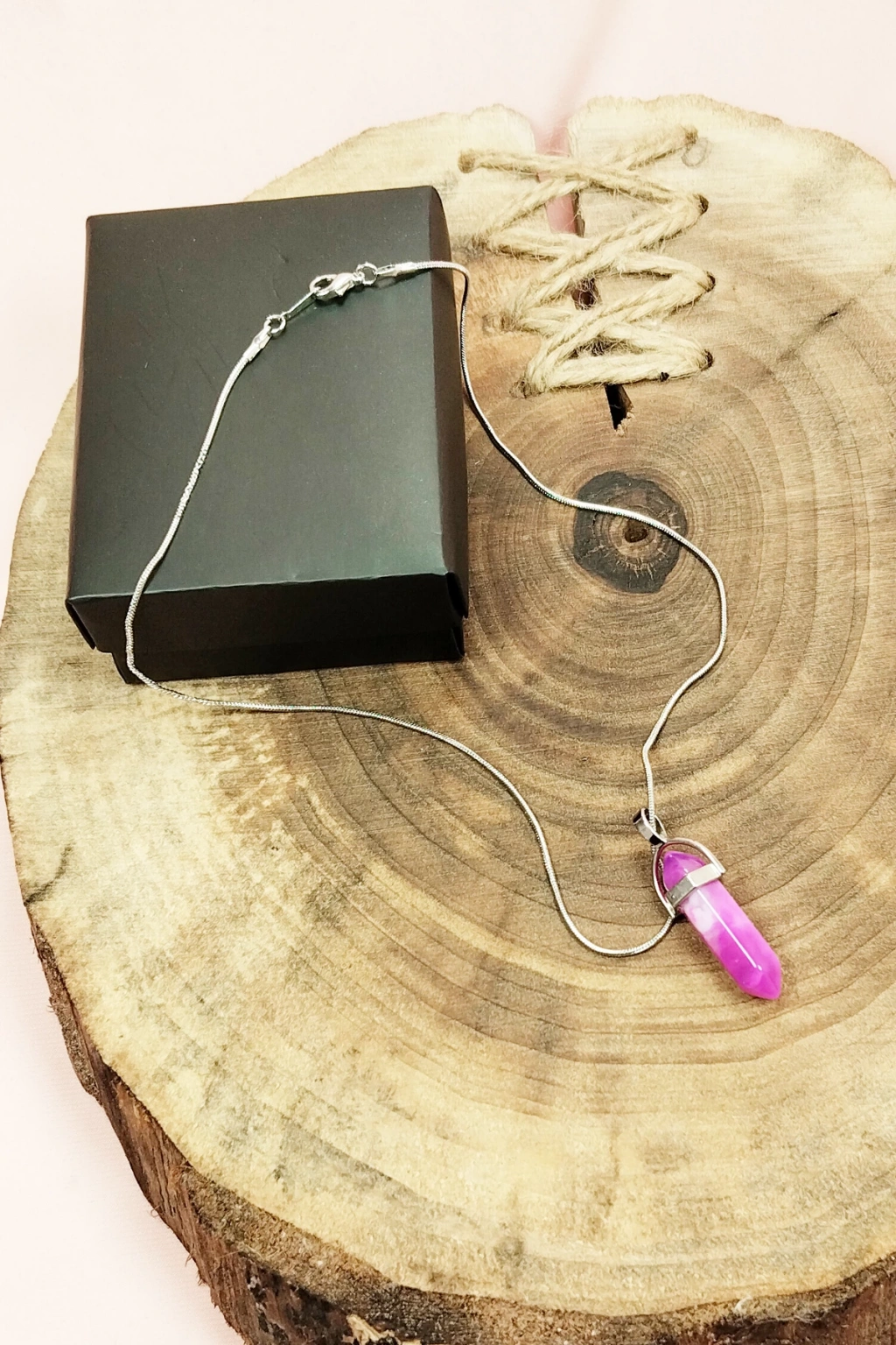 Pembe Akit Doğal Taşı Zincirli El Yapımı Tasarımlı Kolye Uç: 3,5 cm Zincir: 20 cm Kutulu