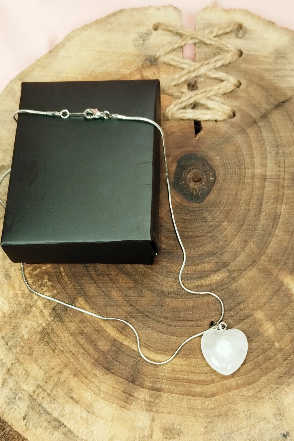 Pembe Kuvars Doğal Taşı Zincirli El Yapımı Kolye Uç: 2 cm Zincir: 20 cm Kutulu