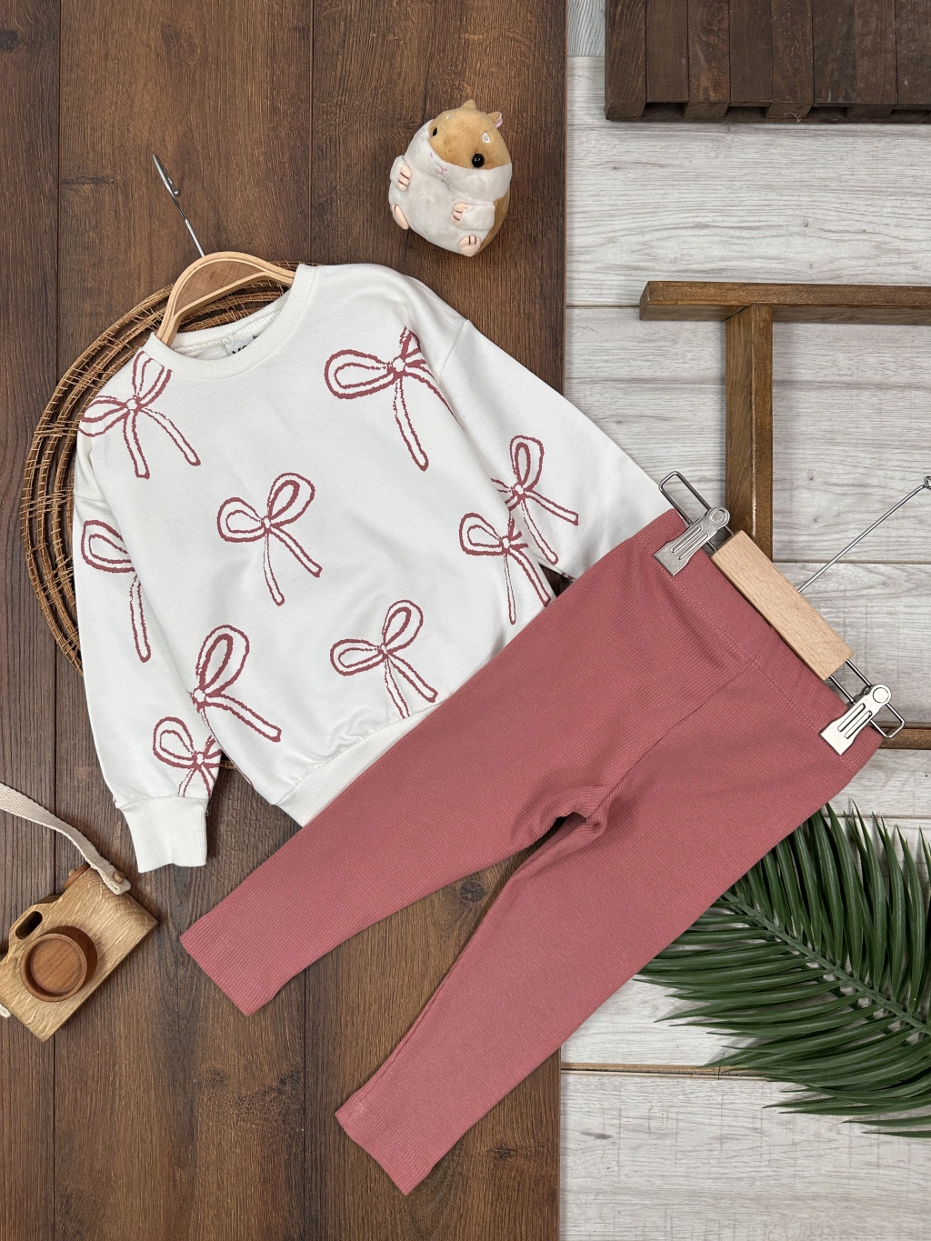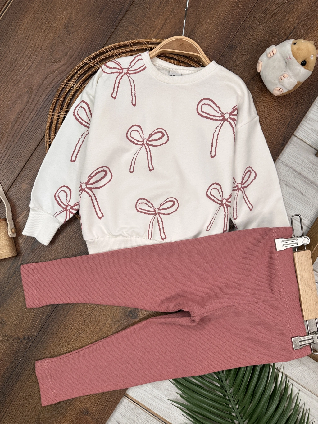 PEMBE RENK BİSİKLET YAKA PAÇALARI LASTİKLİ BELİ LASTİKLİ 2 PARÇA KIZ BEBEK ALT ÜST TAKIM
