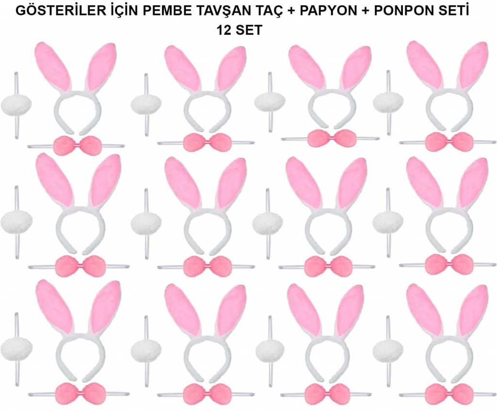 Tavşan Kulaklı Taç – Peluş kaplamalı, pembe ve beyaz renkli, esnek ve konforlu