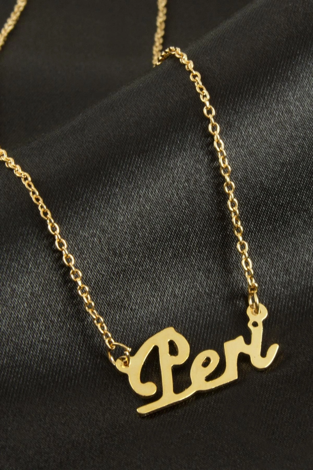 Peri isimli kolye. İsimli kolye pirinç madeninden ve altın kaplamalıdır. Kişiye özel üretilmektedir.Yazdırmak istediğiniz ismi bize mesaj olarak iletmeniz gerekmektedir. Kullanıma bağlı olarak uzun süre kullanıma uygundur. Ürün malzemesi 1.sınıf kalitededir. Ürün ve zinciri sarı renktedir. Ürün zincir boyu 45 cm ve ürün üzerindeki isimler yaklaşık 3 cmdir. İsim boyları ürün ismine göre degişiklik göstermektedir.