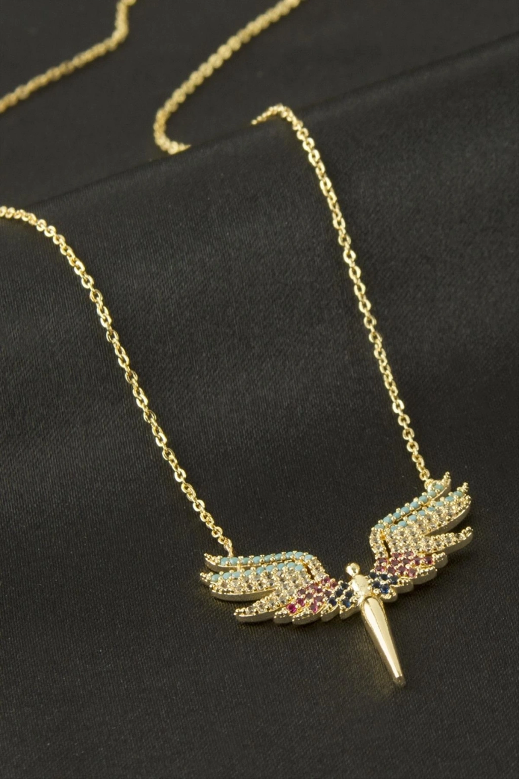 Kolye; Ürün malzemesi metal ve zirkon taşlıdır. Ürün boyu 45 cmdir. Kartlıdır. 1 sınıf kaliteli malzemeden üretilmiştir. Ürün ucundaki aparat boyu 3 cmdir.