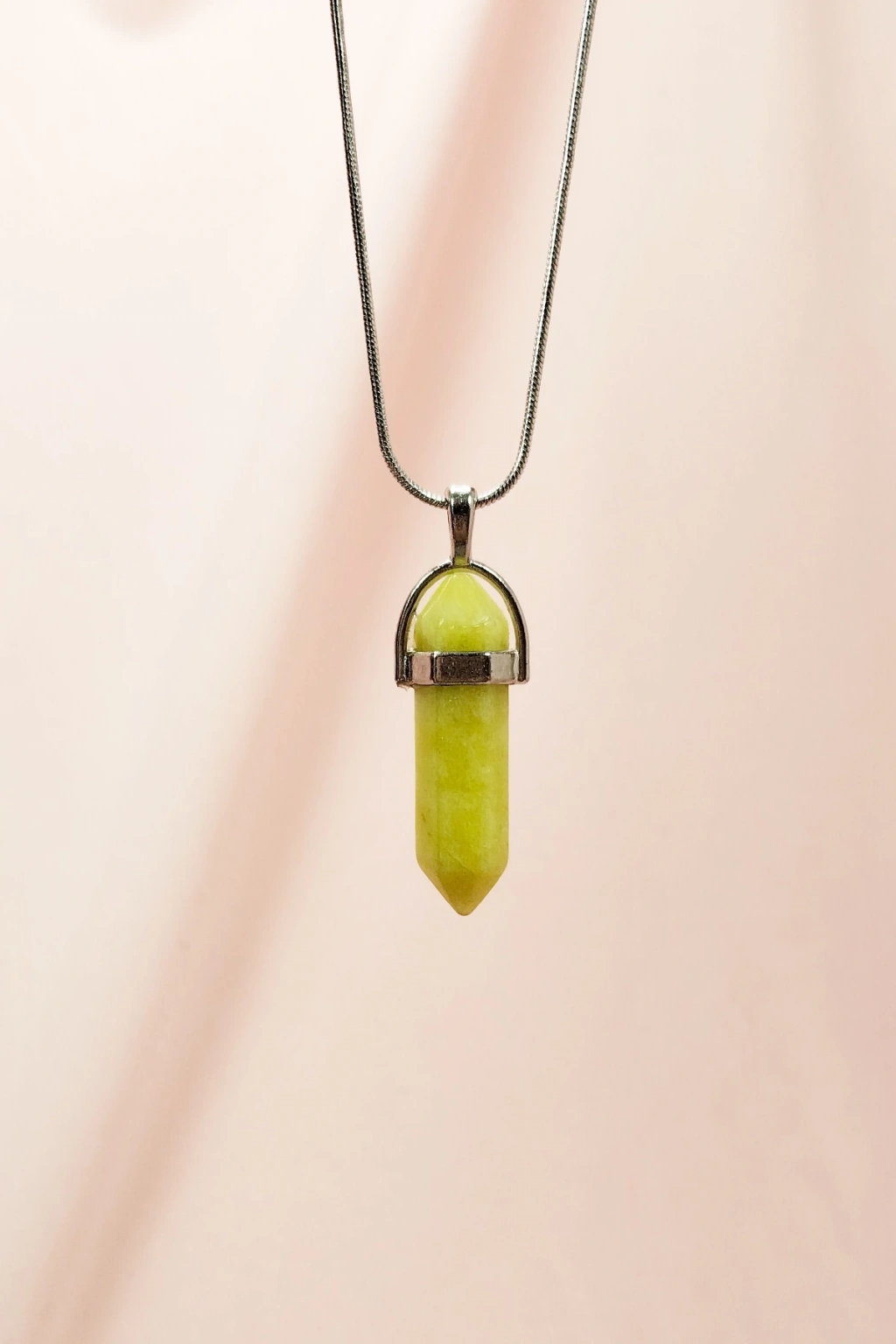 Peridot Doğal Taşı Zincirli El Yapımı Tasarımlı Kolye Uç: 3,5 cm Zincir: 20 cm Kutulu