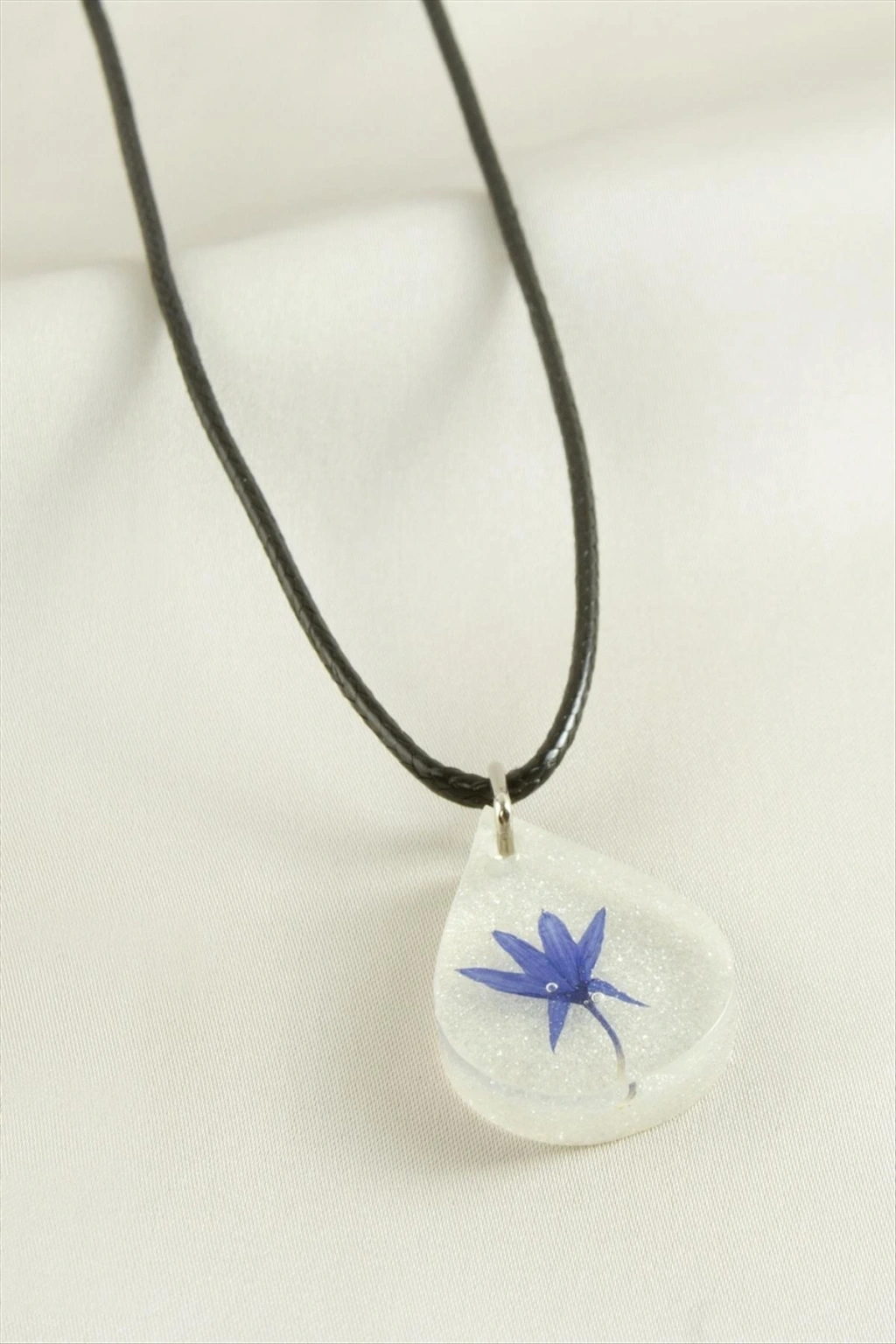 Epoksi Kolye; Ürün malzemesi deri ve epoksi malzemeden üretilmiştir. Ürün 1 sınıf kristal epoksi malzeme kullanılmıştır. Kolye deri ip uzunluğu 50 cm ve ucundaki epoksi 2,5 cmdir.