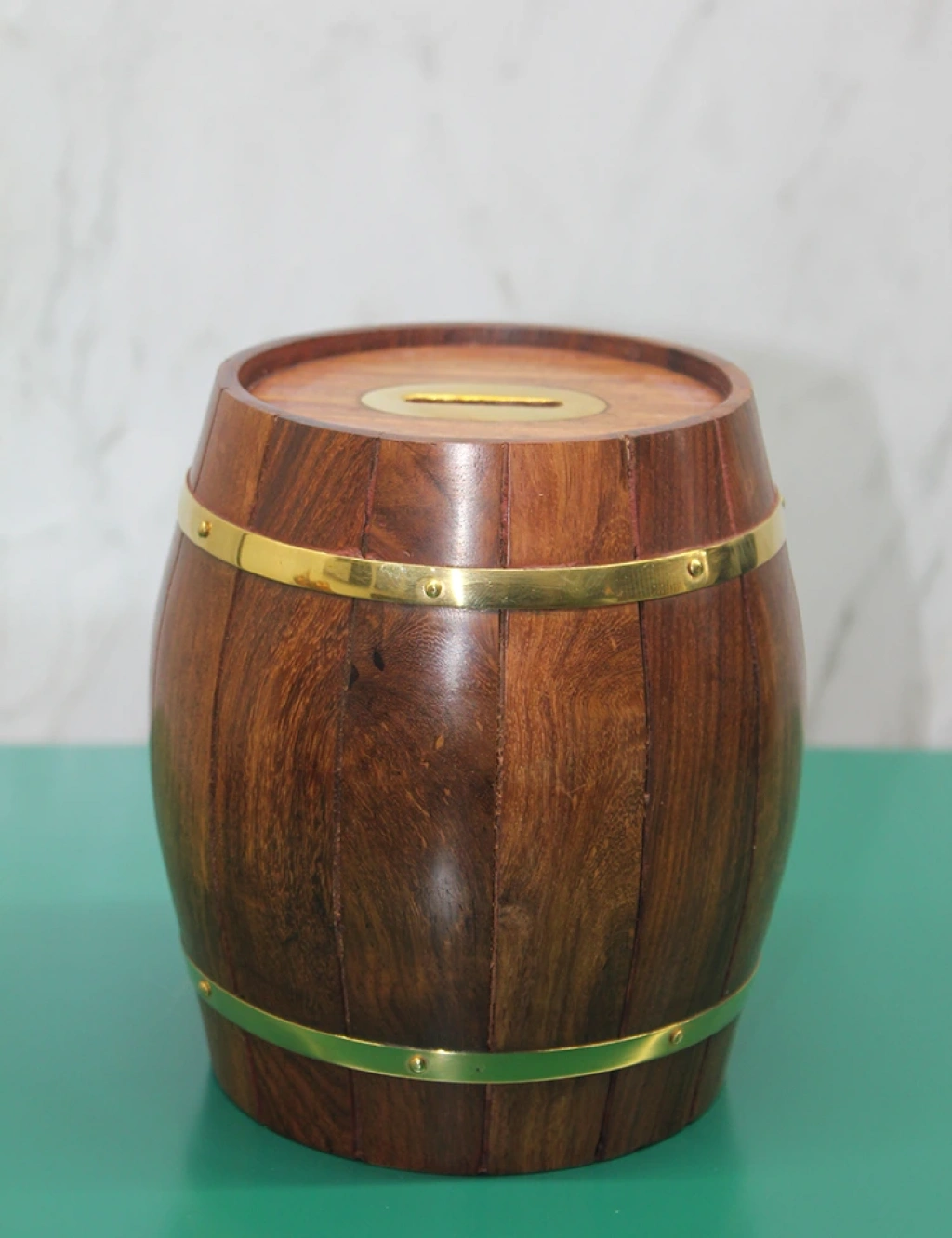 PİRİNÇ AHŞAP FIÇI KUMBARAÜrün ÖzellikleriPirinç Ahşap Fıçı Kumbara, doğal ahşap ve pirinç detayları ile tasarlanmış şık ve dekoratif bir birikim aracıdır. 14x12 cm boyutlarında olup, sağlam ve dayanıklı yapısıyla uzun ömürlü kullanım sunar. Fıçı tasarımı sayesinde hem nostaljik bir hava katar hem de dekoratif olarak hoş bir görünüm sağlar. Paralarınızı güvenle biriktirmenize yardımcı olurken, ahşap ve pirinç birleşimi ile estetik bir şıklık sunar. Ev veya ofis dekorasyonunda dikkat çeken bir obje olarak kullanılabilir.Paket İçeriği1 Adet Pirinç Ahşap Fıçı Kumbara
