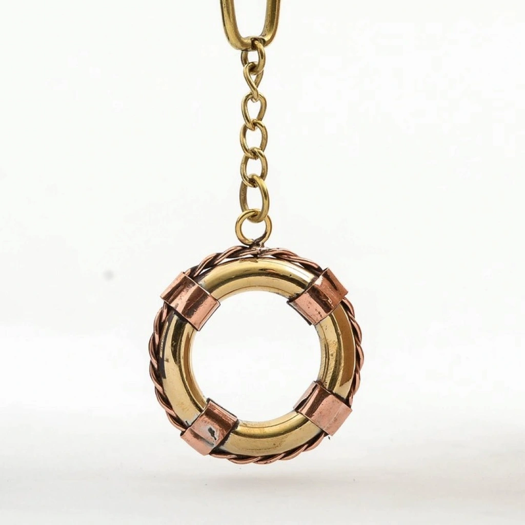 PİRİNÇ ANAHTARLIK MODEL 5Ürün ÖzellikleriDayanıklı pirinç malzemeden üretilmiş olan bu şık anahtarlık, klasik denizcilik temalı tasarımıyla dikkat çeker. Yuvarlak can simidi formundaki tasarımı, estetik ve otantik bir görünüm sunarken, sağlam yapısı uzun ömürlü kullanım sağlar. Parlak yüzeyi ve bakır detayları sayesinde dekoratif bir aksesuar olarak da tercih edilebilir. Metal halkası ve zinciri sayesinde anahtarlarınıza kolayca takılabilir veya çantanızda taşınabilir. Hem günlük kullanım hem de koleksiyonluk bir parça olarak uygundur.Paket İçeriği1 Adet Pirinç Anahtarlık Model 5