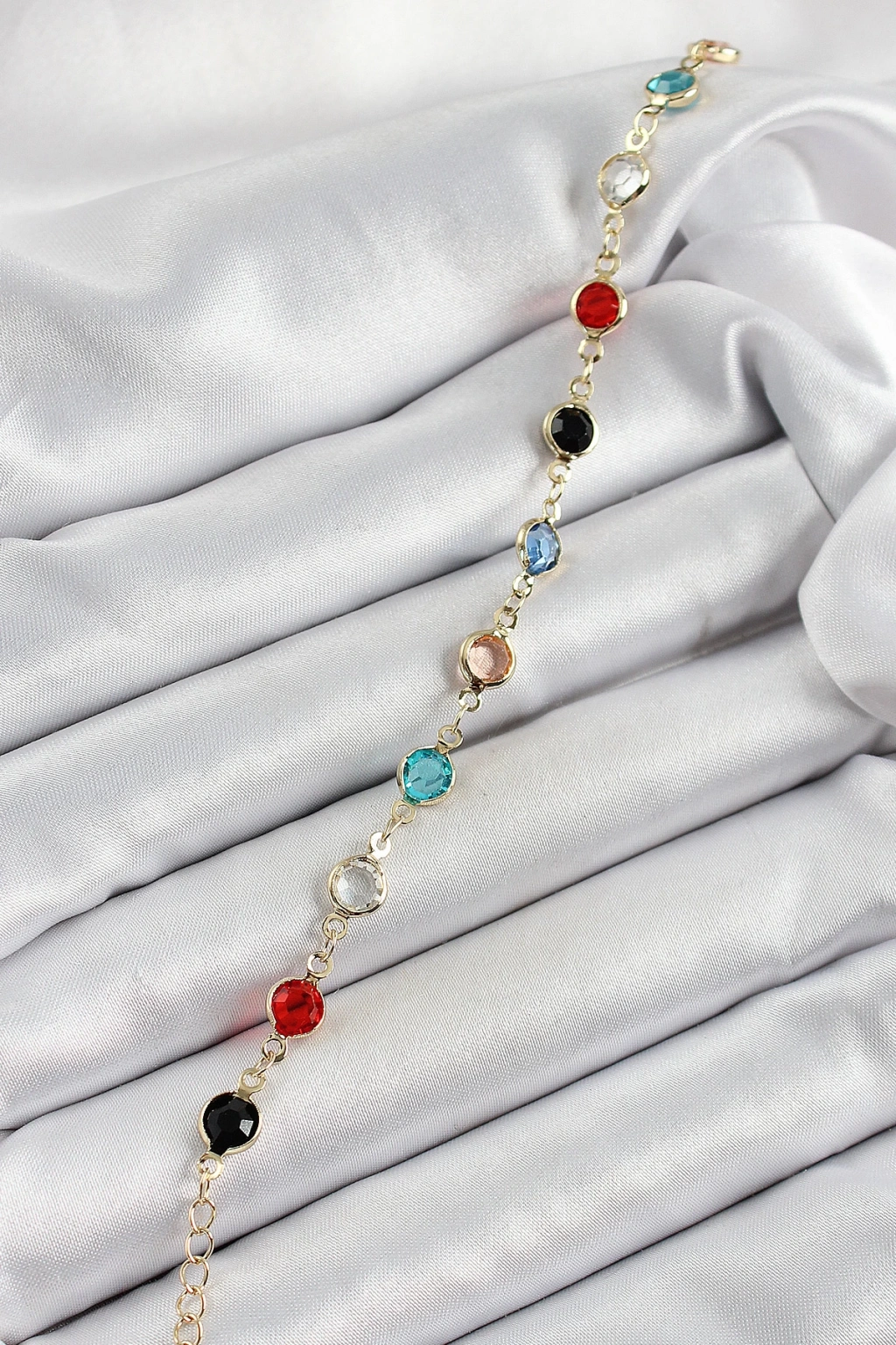 Pirinç Asorti Model Gold Renk Zirkon Taşlı Kadın Bileklik - TJ-BB7039