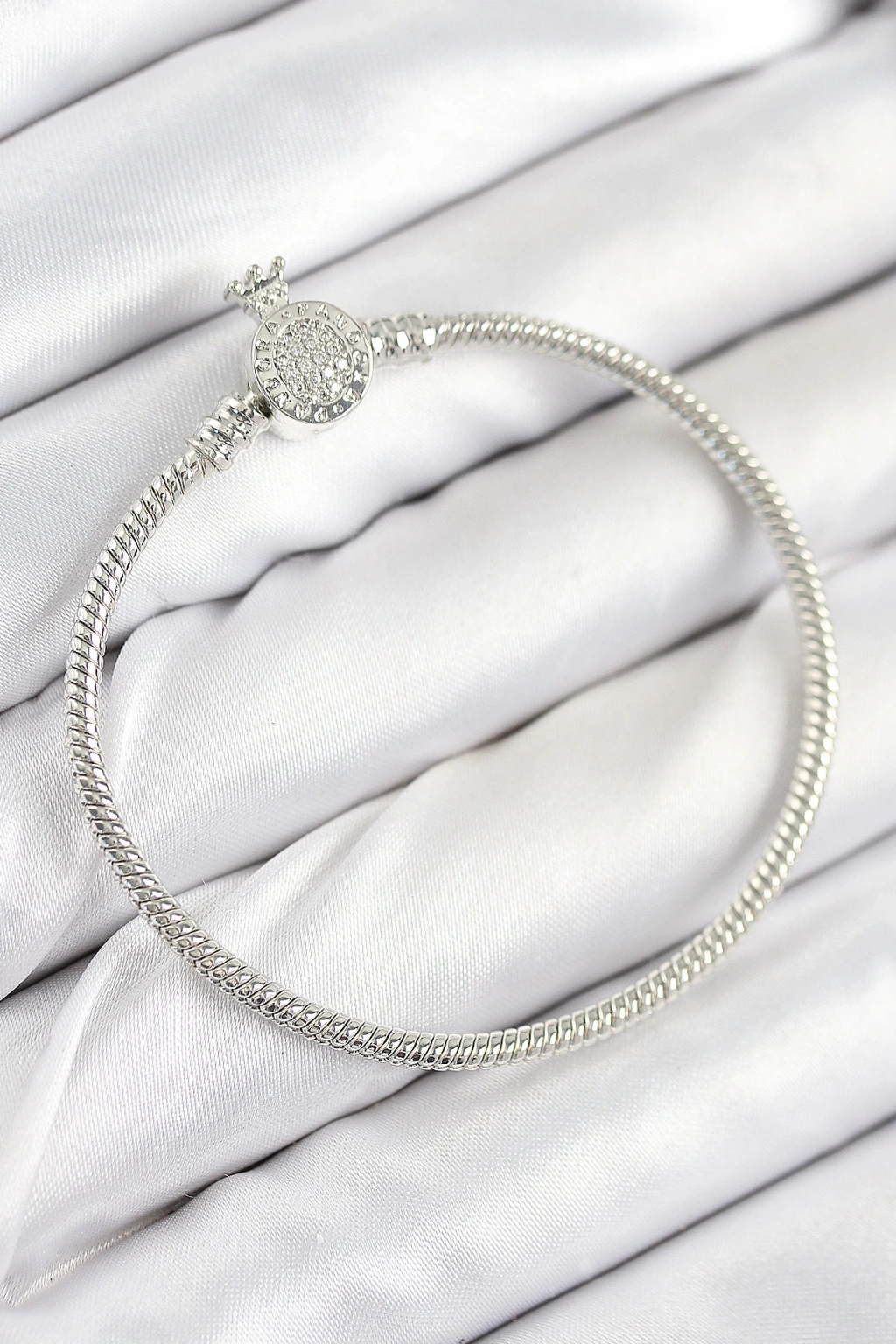 Pirinç Charm Zirkon Taşlı Taç Model Gümüş Renk Kadın Bileklik - TJ-BB7802