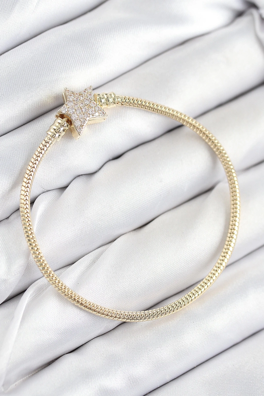 Pirinç Charm Zirkon Taşlı Yıldız Model Gold Renk Kadın Bileklik - TJ-BB7810