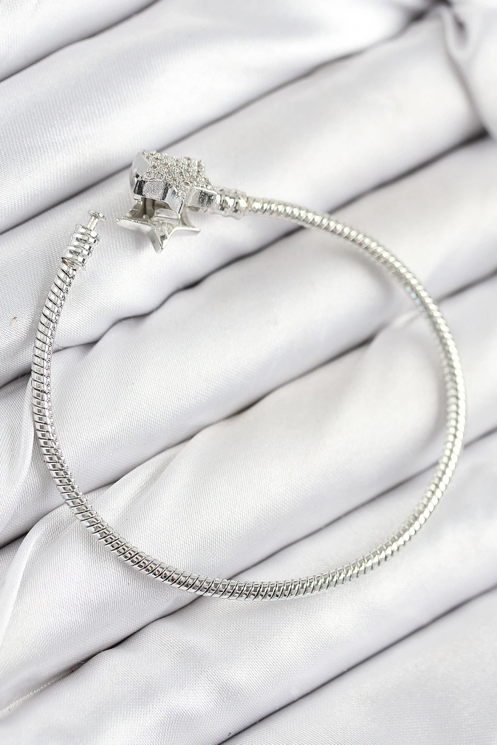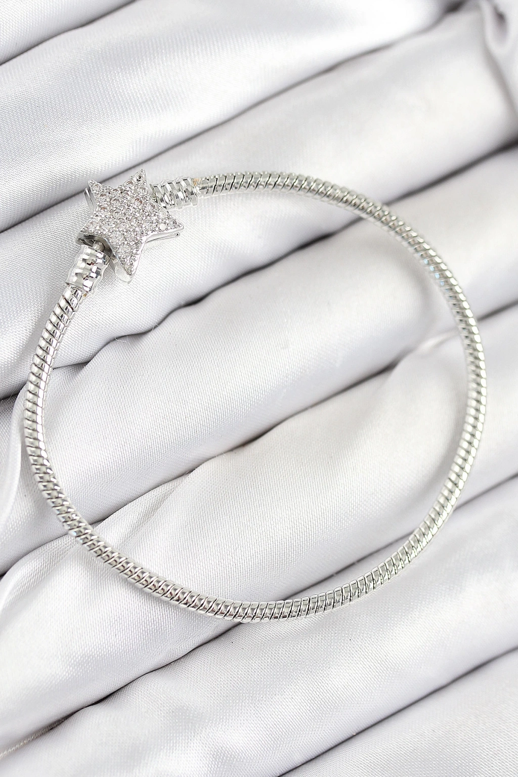 Pirinç Charm Zirkon Taşlı Yıldız Model Gümüş Renk Kadın Bileklik - TJ-BB7804