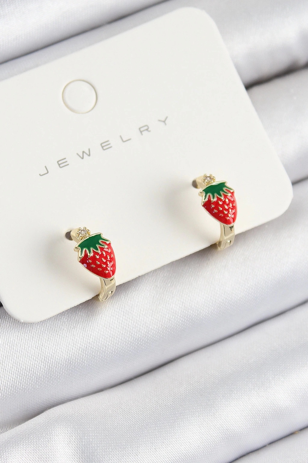 Pirinç Çilek Model Gold Renk Çocuk Küpe - TJ-BKP10906