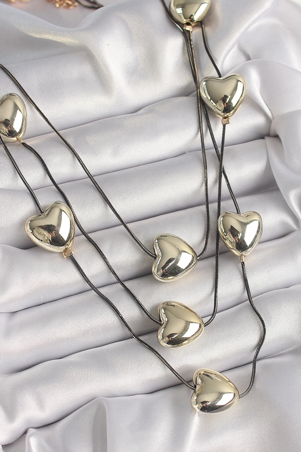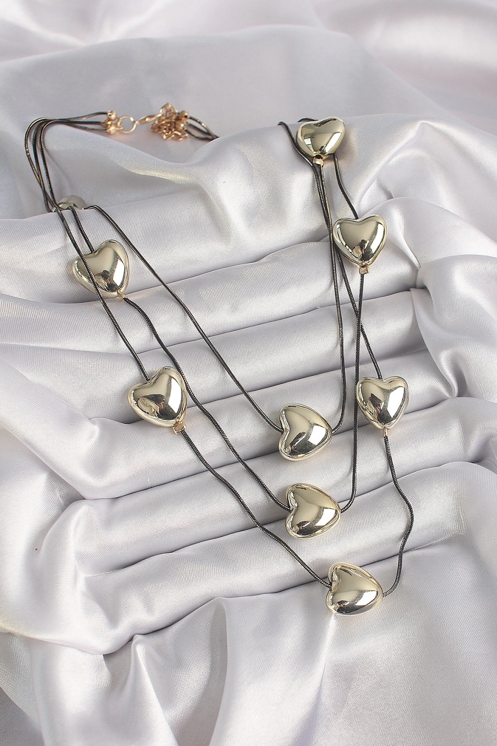 Pirinç Füme Renk Zincir 3D Gold Renk Kalp Model Kadın Kolye - TJ-BKO9618