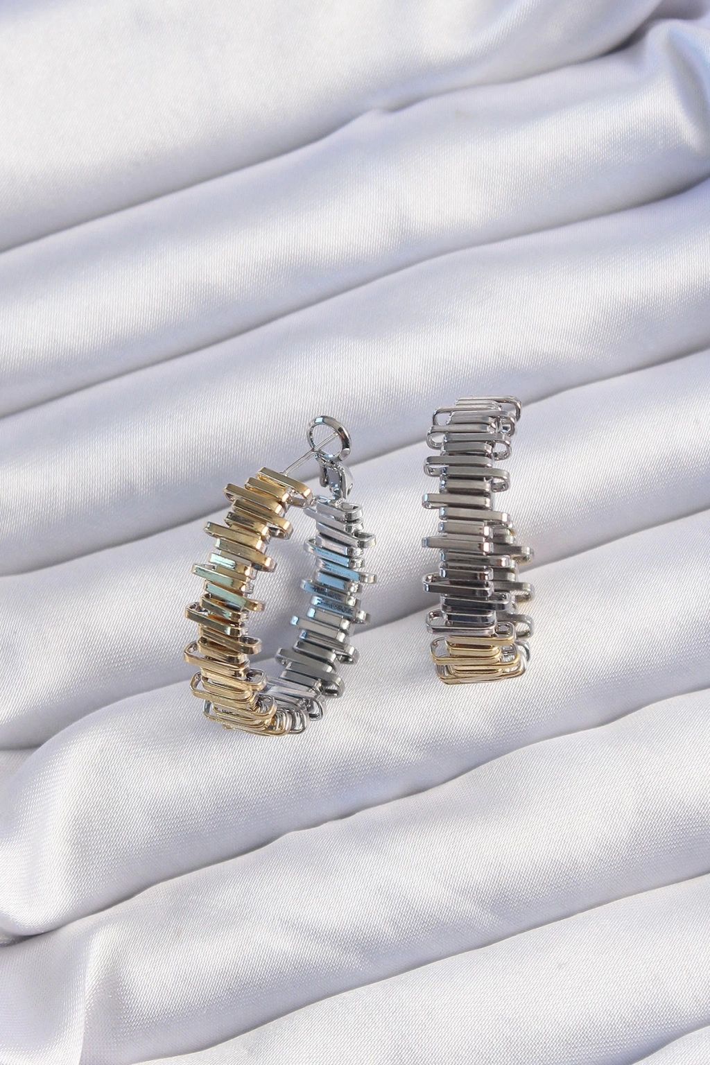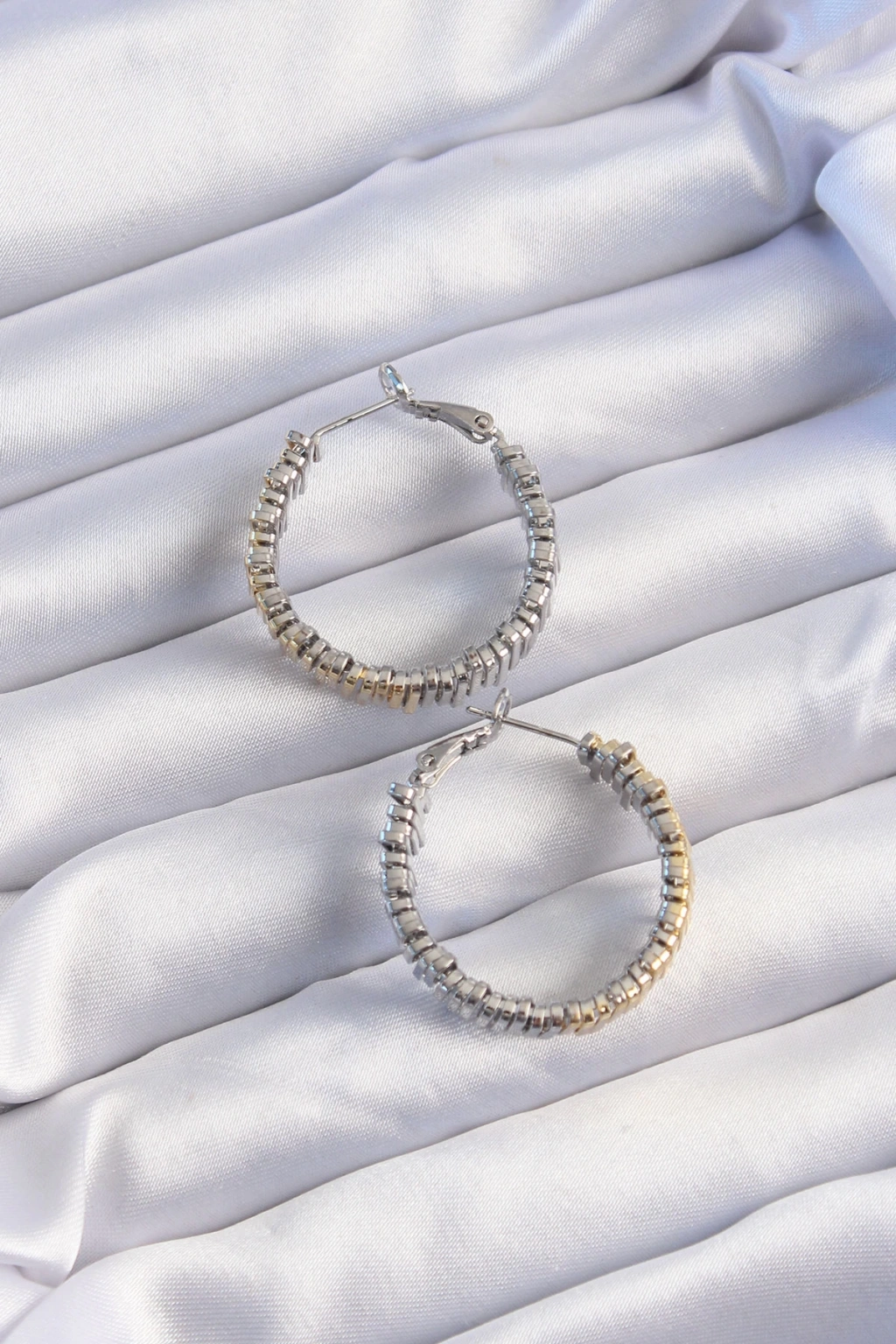 Pirinç Gold Gümüş Renkli Tırtıklı Halka Küpe - TJ-BKP9228