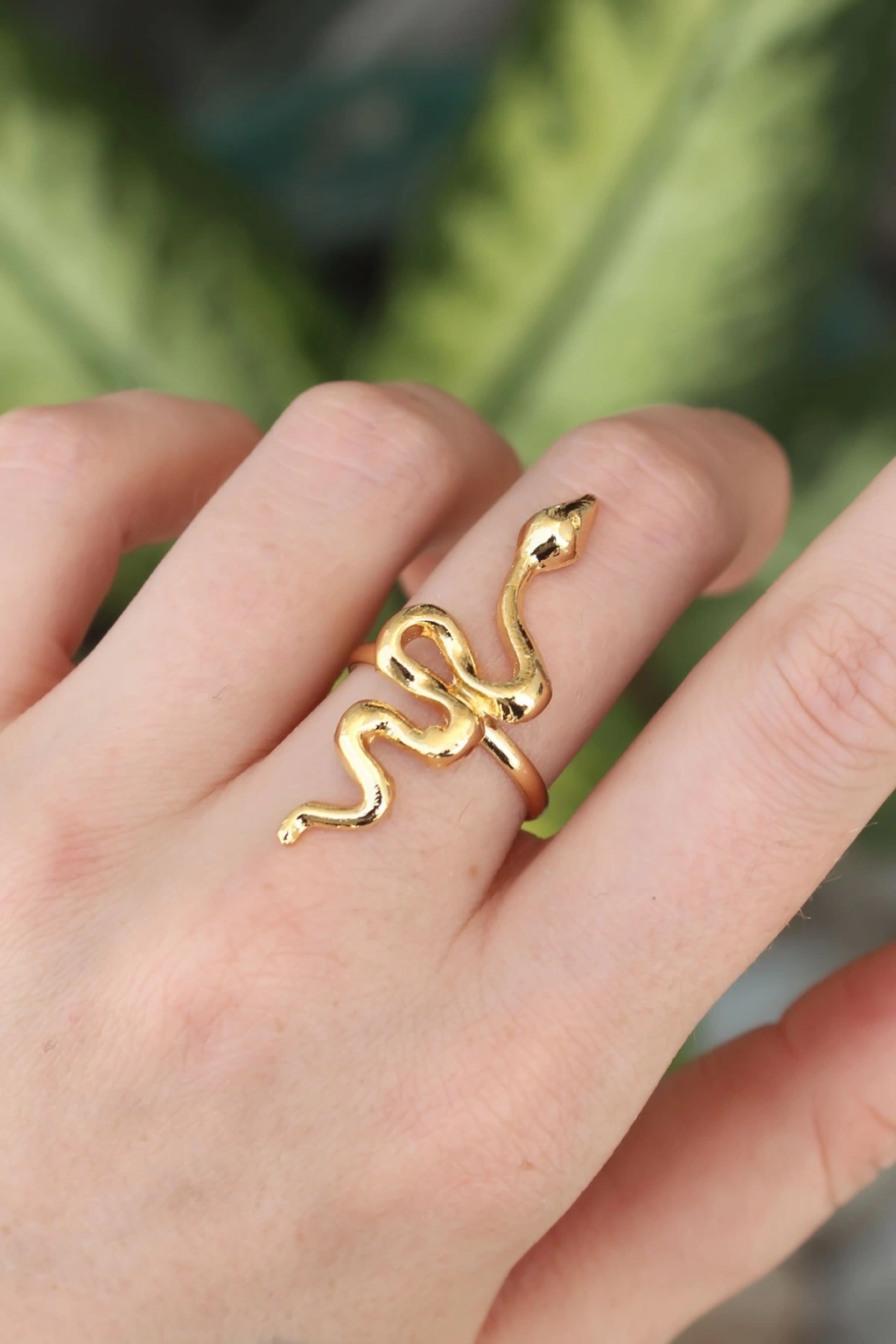 Pirinç Gold Renk Ayarlanabilir Yılan Yüzük - TJ-BYK3162