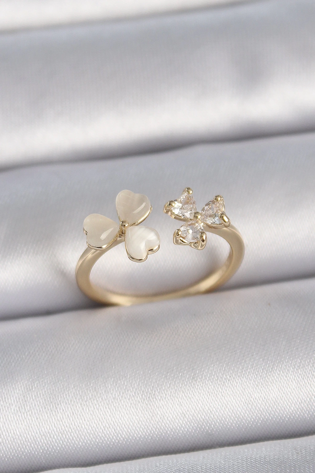 Pirinç Gold Renk Ayarlanabilir Zirkon Taşlı Kalp Beyaz Mineli Model Kadın Yüzük - TJ-BYK3388